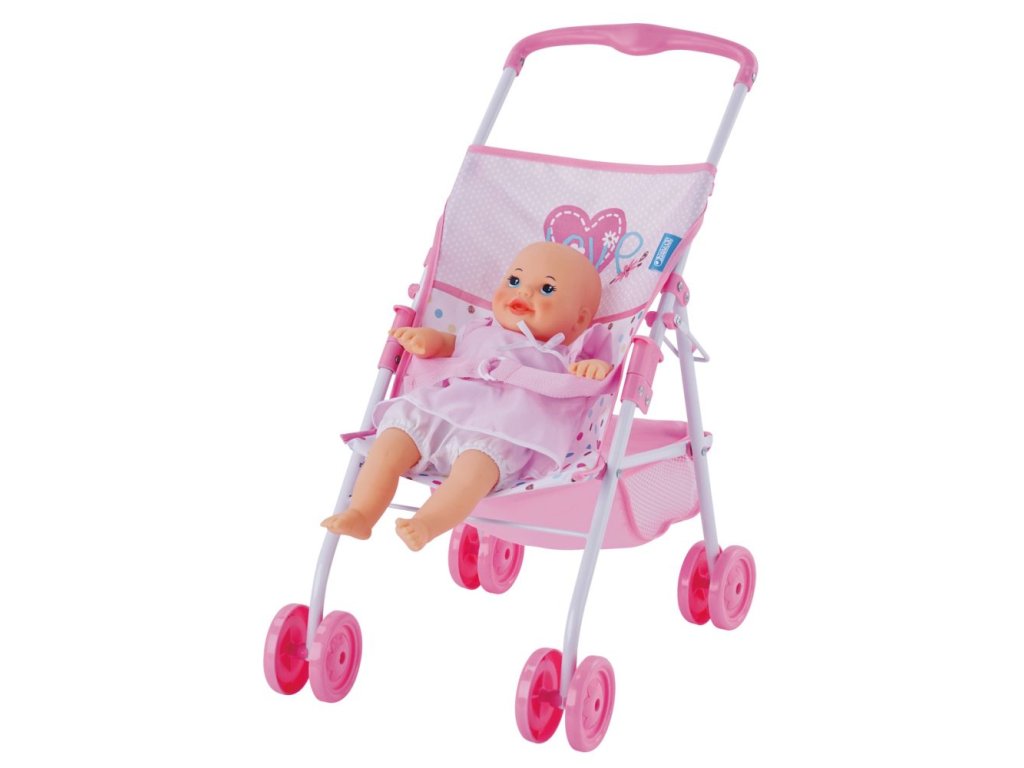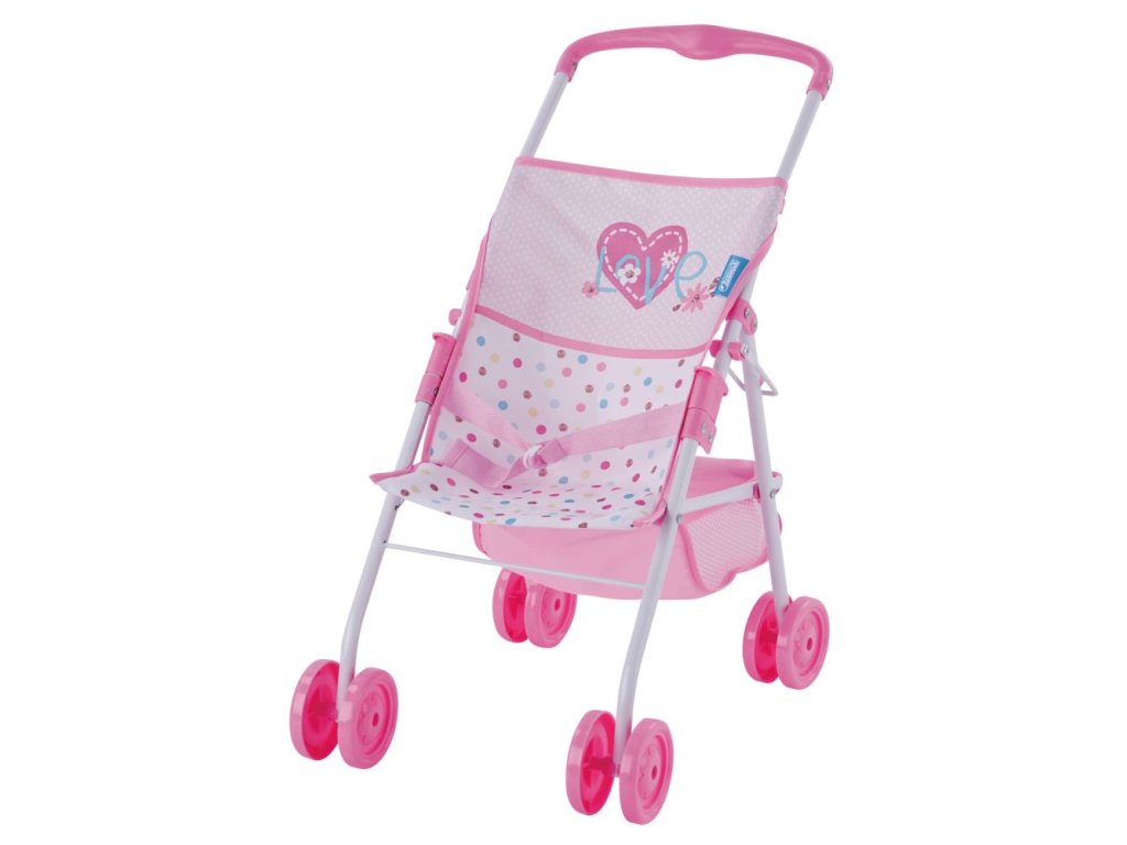 Kočárek pro panenky Love Heart se snadno skládá a má nastavitelný bezpečnostní pás, aby byla vaše panenka v bezpečí. Vhodné pro děti od 3 let.