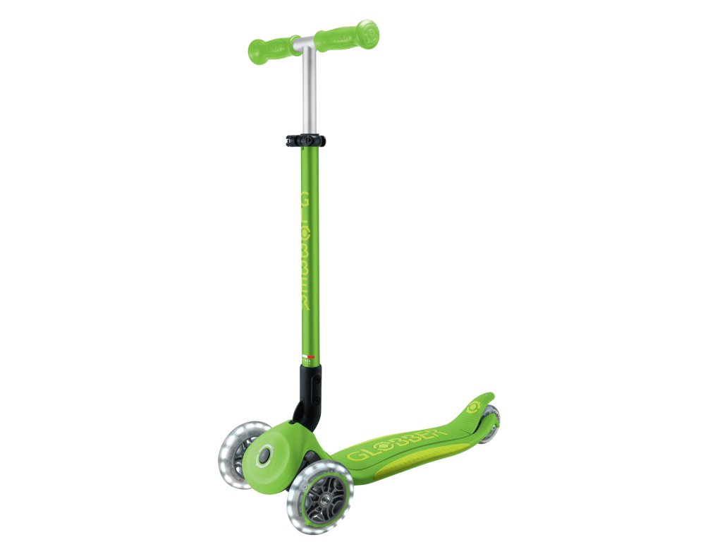 Globber Koloběžka dětská trojkolečková Plus - Primo Foldable Plus Lights V2 Apple Green svítící kolečka