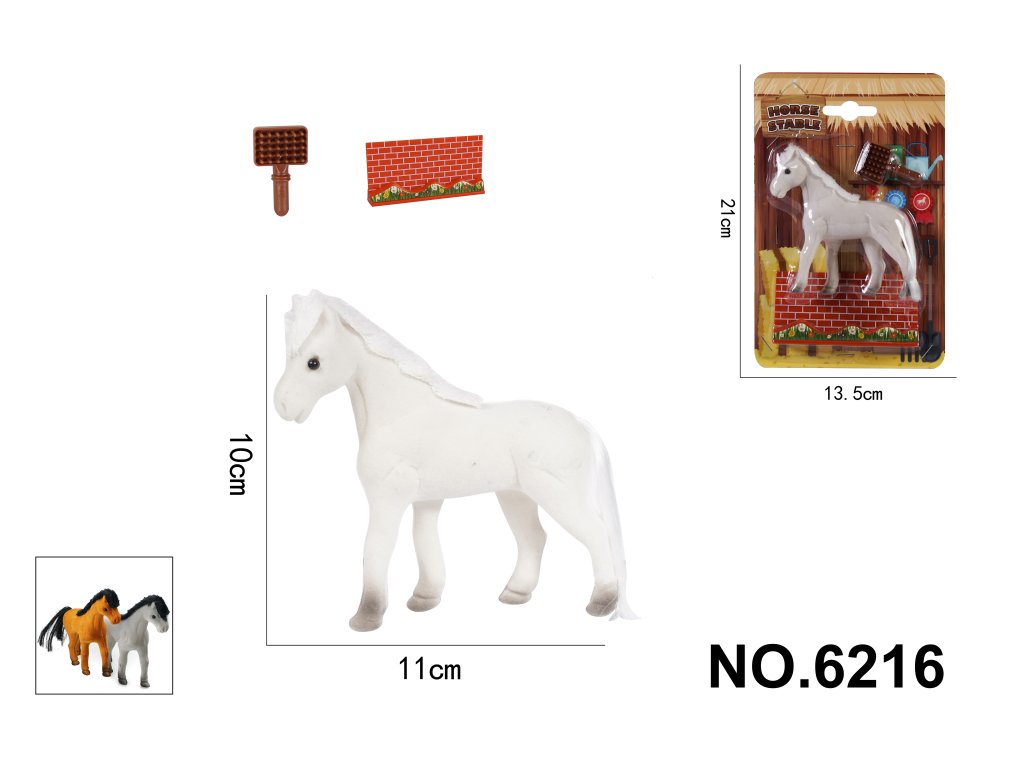 Kůň parkurový. Rozměry 11x10 cm. Součástí kůň, kartáč, překážka. 2 varianty - bílý, hnědý.