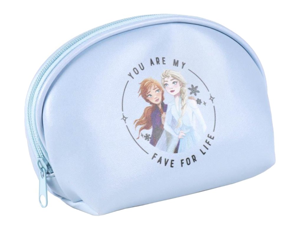 Jednoprostorová světle modrá atraktivní kosmetická taška s grafikou sester královny Elsy a princezny Anny. Kosmetická taštička je vhodným dárkem pro všechny fanoušky.