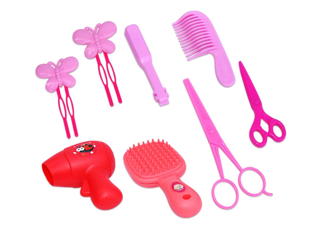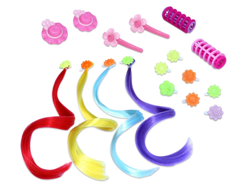 Součástí hřeben, kulma, barevné prameny vlasů, sponky.