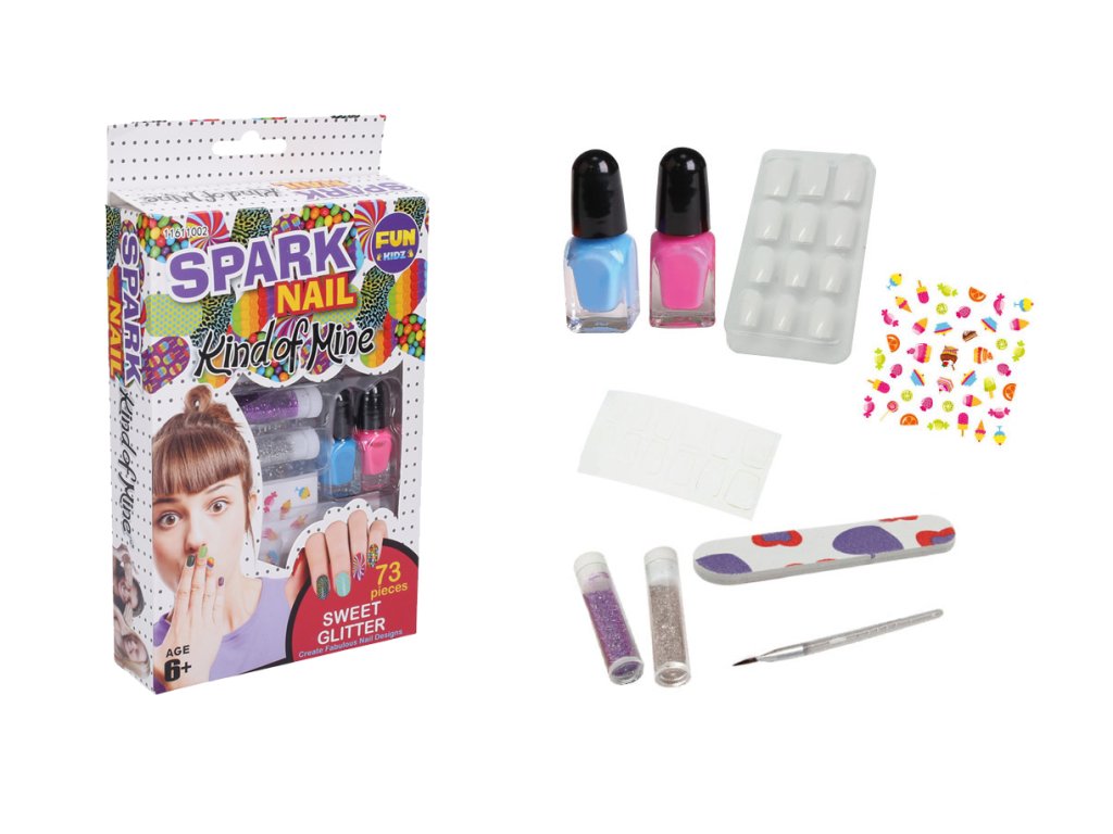 Staň se manikérkou a dopřej svým nehtům krásný a stylový vzhled! Díky setu si můžeš vytvořit originální třpytivé nehty s motivem sladkostí!