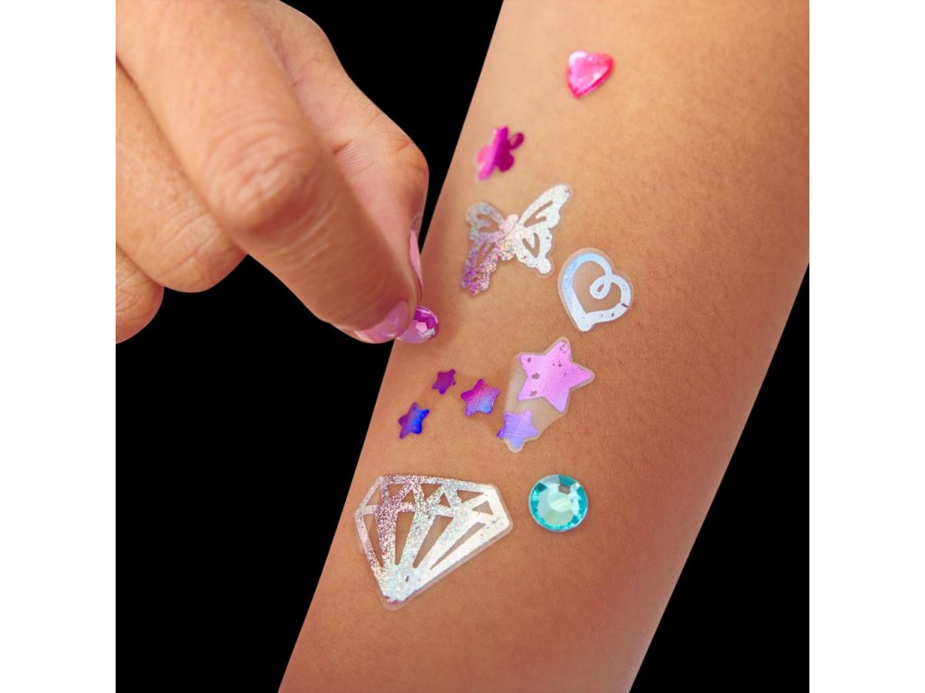 Unikátní Tetovací sada, se kterou si vyzdobíš tělo trendy vzory a barevnými kamínky. Když tě přestane tetování bavit, jen ho sloupneš a můžeš začít znovu. Balení obsahuje 1 roller, 3 kazety s průhlednou fólií, 3 oboustranné archy nálepek, 1 arch nalepovacích kamínků, návod. Vhodné od 7 let.
