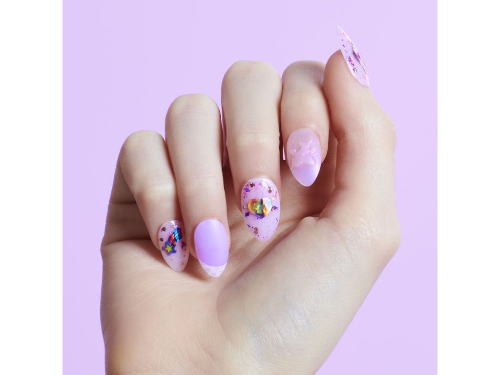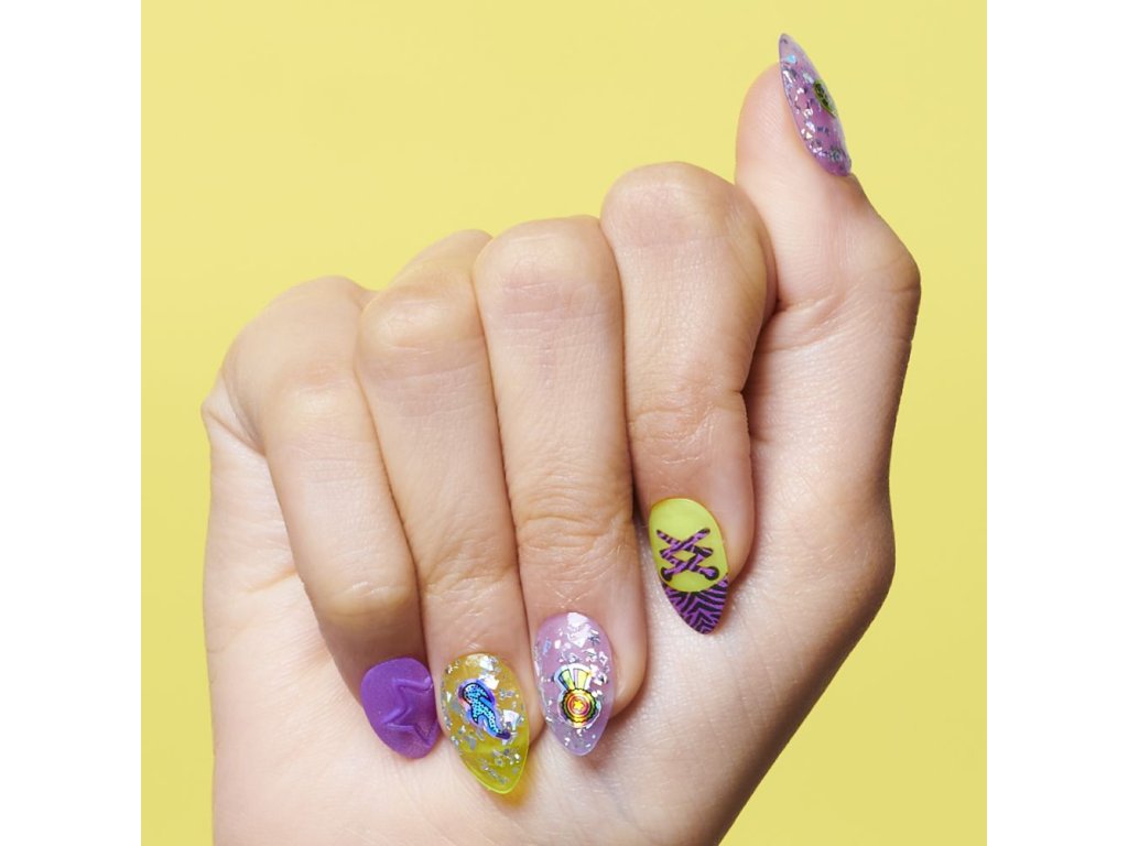 Exkluzivní dvojbalení nápaditě balené sady Manikúry s jedinečnými styly jako nehty svítcí ve tmě, voňavé nehty či nehty které mění barvu a další. Obsah balení: 80 nalepovacích nehtů (2 speciální efekty), 4 3D nehty (2 speciální efekty), 10 nalepovacích nehtů (2 speciální překvapení), 2 listy se samolepkami s překvapením + 2 třpytivé fólie, 4 listy s lepidlem na nehty, 2 speciální třpytivé laky, 1 pilník na nehty.