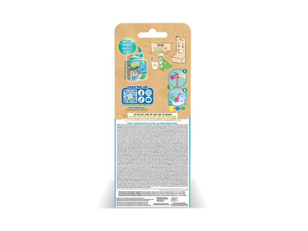 Speciální kouzelná hůlka ve tvaru hvězdy - 3 barvy hůlky na jednom displeji. Každá hůlka obsahuje: 5 kapek do koupele (2x purpurová, 2x žlutá, 1x modrá). Lze je smíchat a vytvořit tak nové barvy. Každá kapka může obarvit až 80 l vody. Display 6ks.