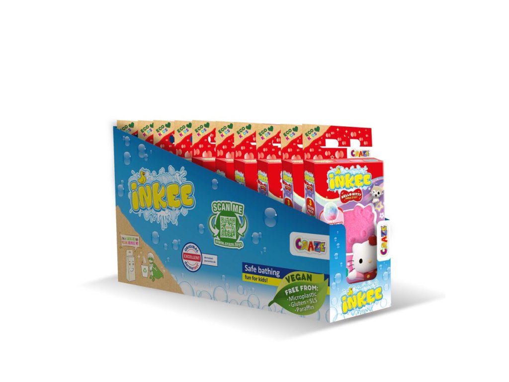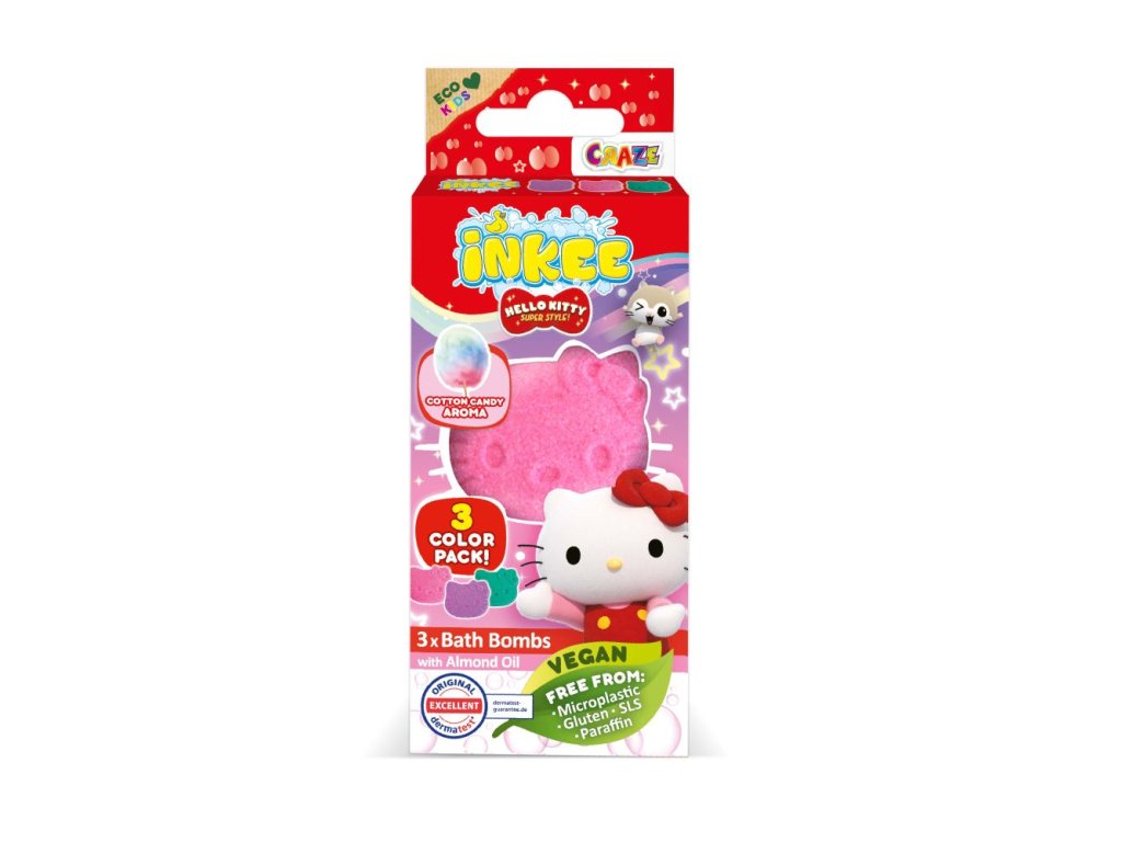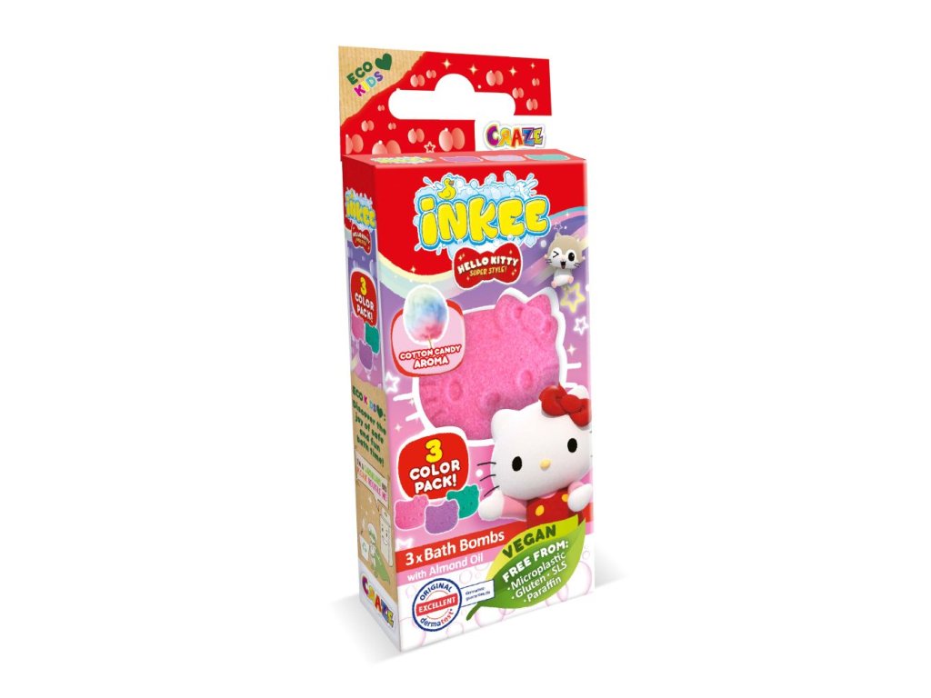 Balení bomby do koupele (3x15g) s tvarem Hello Kitty. Baleno v kartonové krabici s okénkem. Display 10ks.
