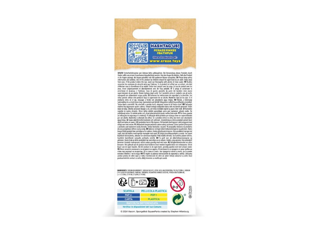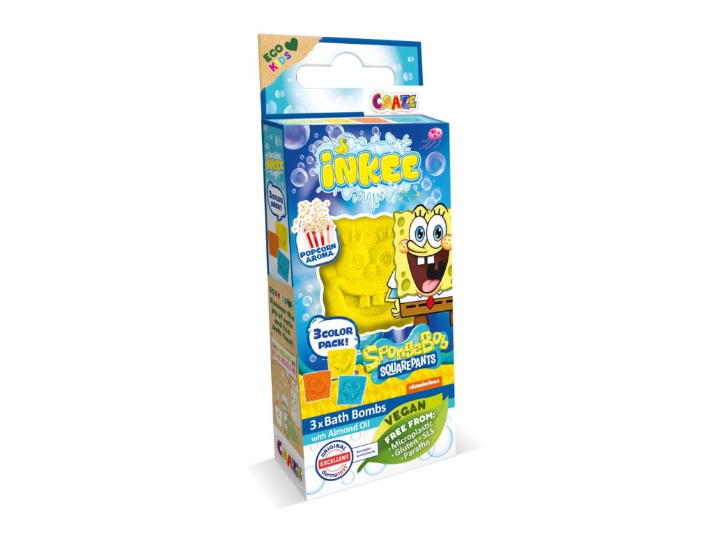Balení bomby do koupele (3x15g) s tvarem Sponge Bob. Baleno v kartonové krabici s okénkem. Display 10ks.