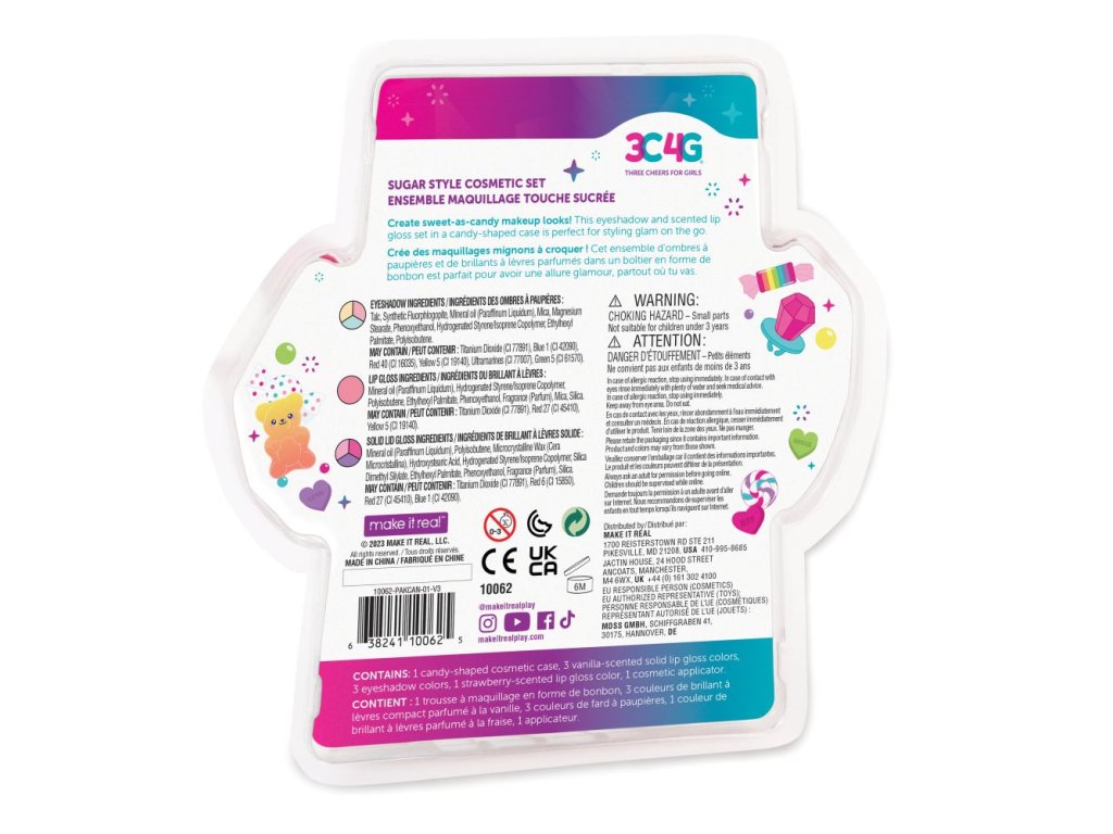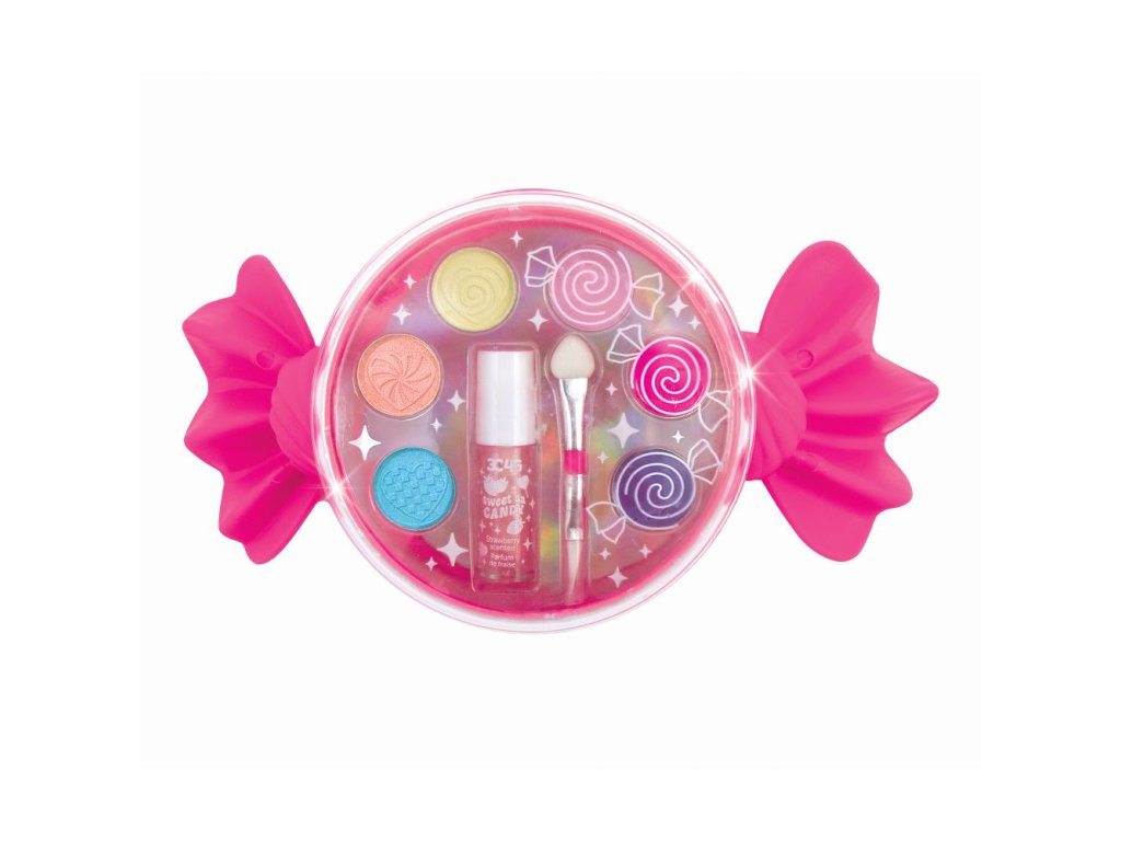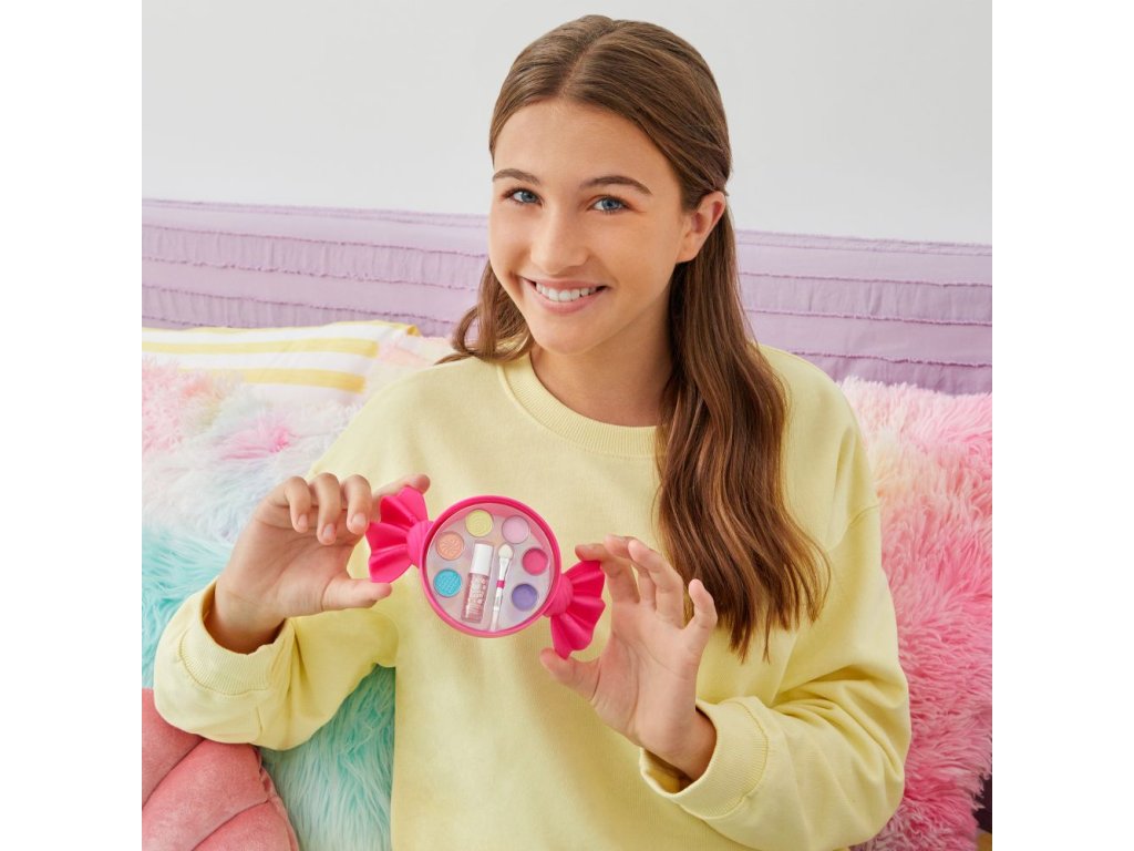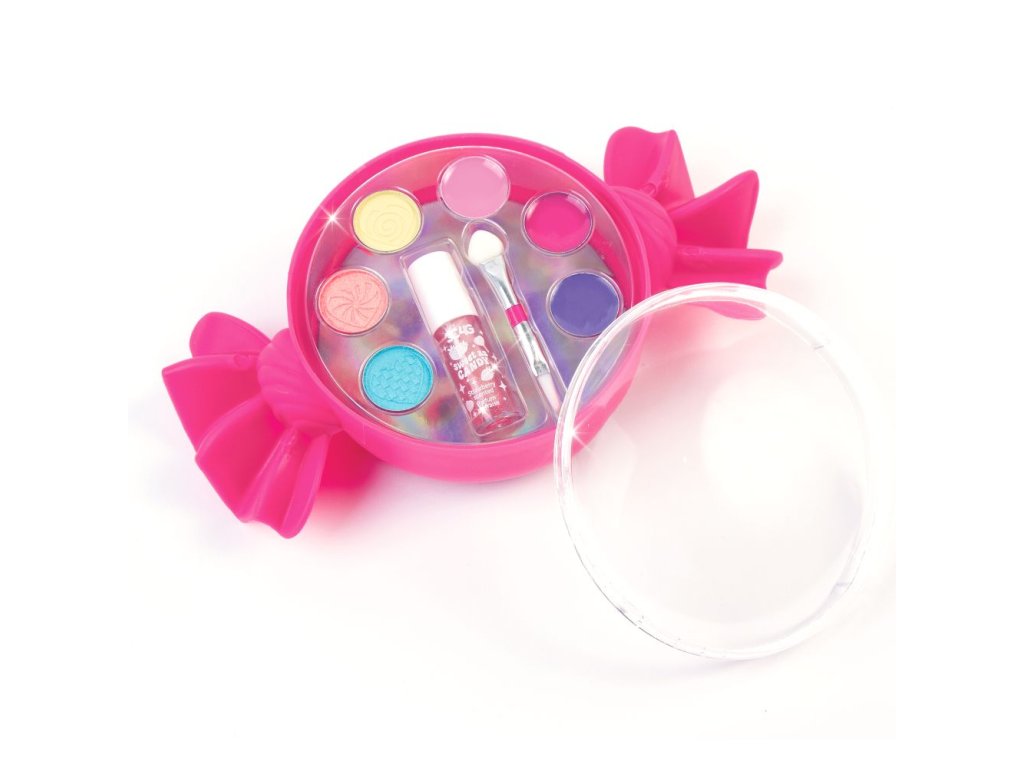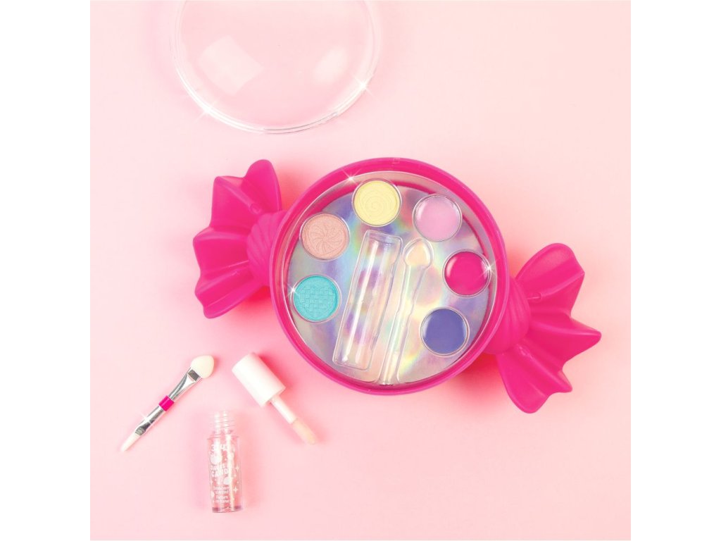 Vezměte si tuto sladkou kosmetickou sadu na cesty! Tato sada s pestrou nabídkou očních stínů a voňavého lesku na rty je uložená v roztomilém pouzdře ve tvaru bonbónu. Sada obsahuje 3 pevné lesky na rty s vůní vanilky, 3 barvy očních stínů, aplikátor a 1 tekutý lesk na rty s vůní jahod. Veškerá kosmetika je testována na bezpečnost pro děti od 8 let. Skvělý tip na dárek k narozeninám nebo k svátku.