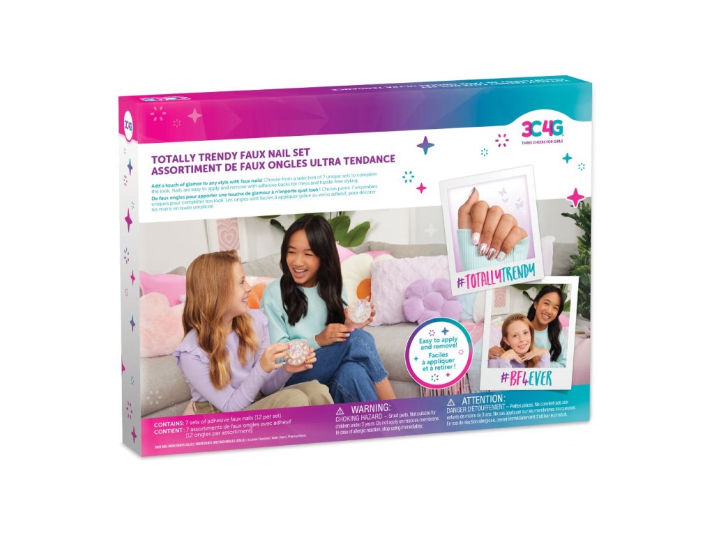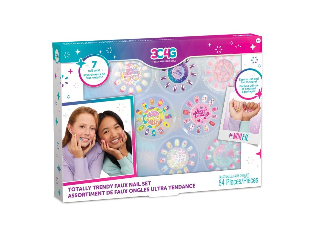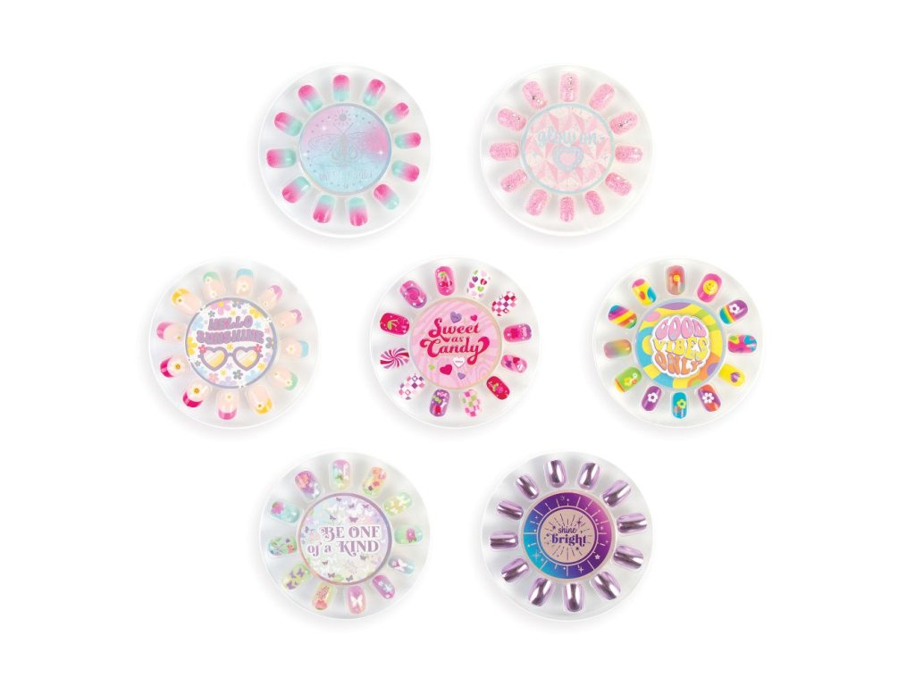 Objevte tuto krásnou sadu umělých nehtů. Balení obsahuje sedm různých sad umělých nehtů přizpůsobených tak, aby doplnily jakýkoli požadovaný vzhled. Aplikace a odstranění jsou snadné díky jednoduchým lepicím zadním stranám. Každá sada se může pochlubit 12ti umělými nehty včetně dvou velikostí pro palce. Tato kolekce je perfektní dárek pro mladé módní nadšence!