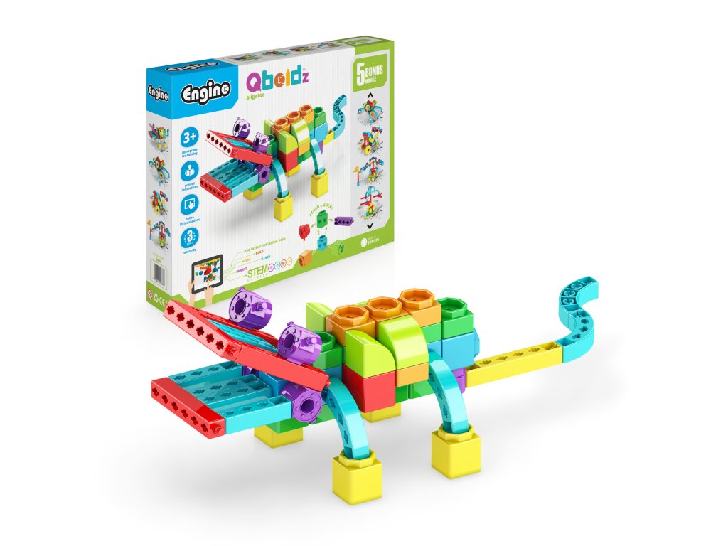 možnost sestavit 5 modelů, zajímavá fakta o zvířátkách, omalovánky, spojování teček a obkreslování čísel a písmen abecedy, aktivity k procvičování matematiky, tvarů a barev, aplikace Engino kidCAD zobrazující 3D model