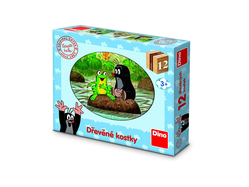 DĚTSKÉ DŘEVĚNÉ KOSTIČKY, ZE KTERÝCH LZE SESTAVIT 6 RŮZNÝCH OBRÁZKŮ. BALENÍ OBSAHUJE 12 KOSTIČEK.