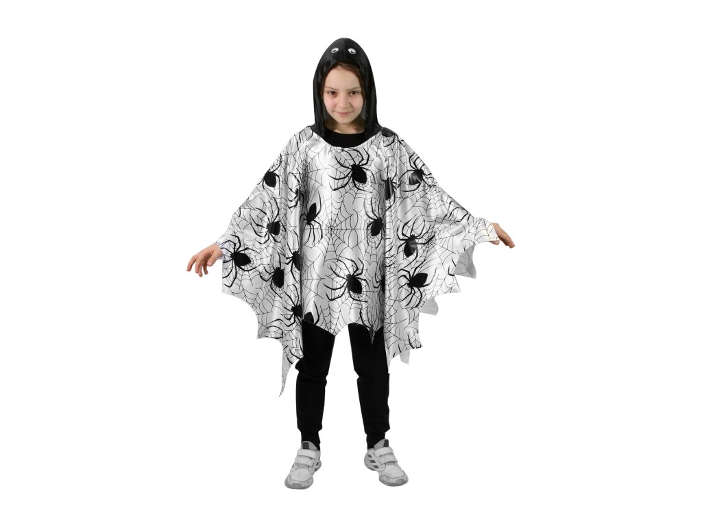 Dětský plášt s kapucí je určen pro všechny holky a kluky ve věkovém rozmezí 3-10 let (104-150 cm). Plášť bílé barvy s černým potiskem pavouků a pavučin je doplněn černou kapucí s očima. Ideální doplněk na Halloween párty či slavnosti čarodějnic. Délka pláště cca 65 cm.