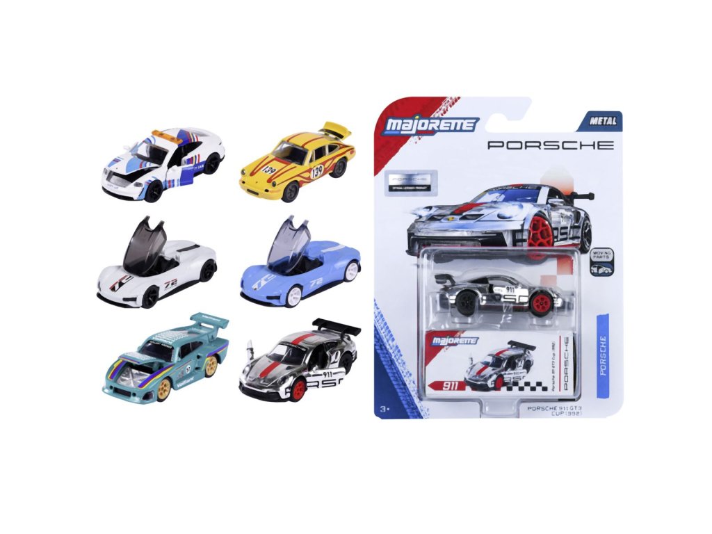 Deluxe kovové autíčko Porsche na volnoběh, otevírací části. Měřítko 1:64, délka 7,5 cm.