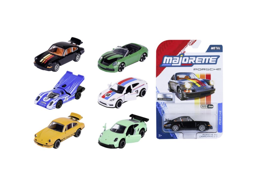 Prémiové kovové autíčko Porsche na volnoběh, otevírací části. Měřítko 1:64, délka 7,5 cm.