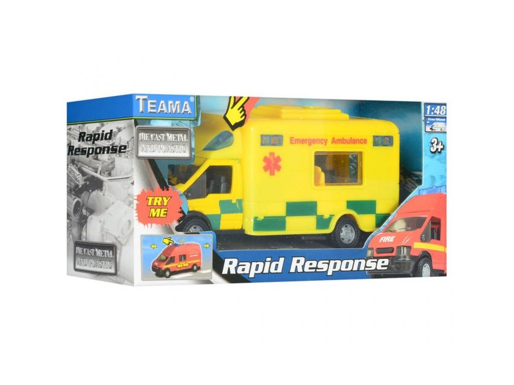 Kovové auto Rapid se zvukem v měřítku 1:48.