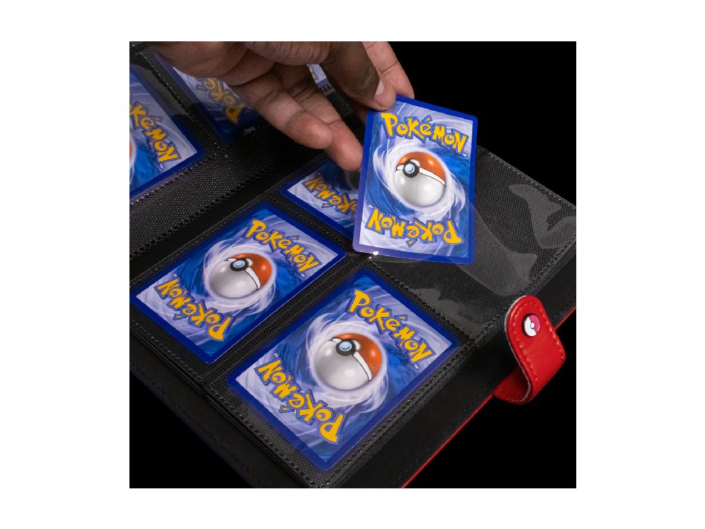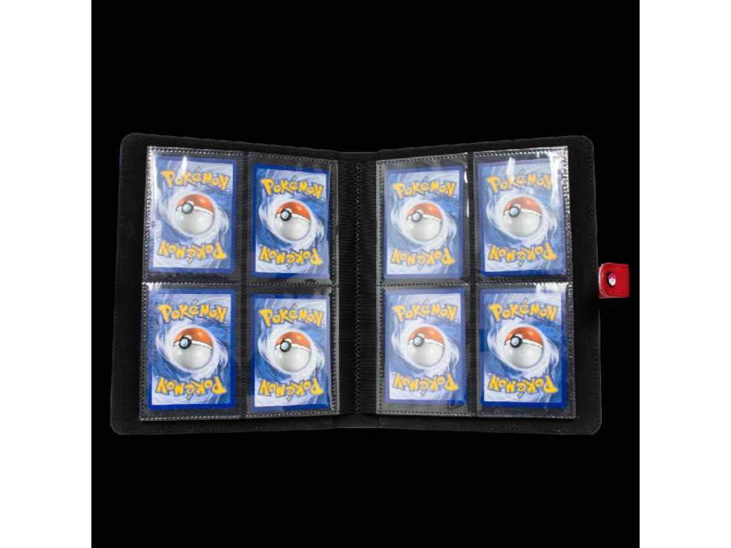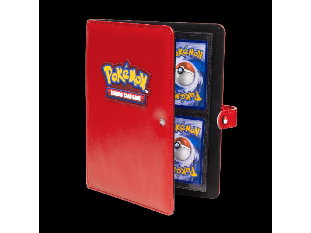 Album s polstrovaným koženkovým obalem a gumovým logem Pokémon.