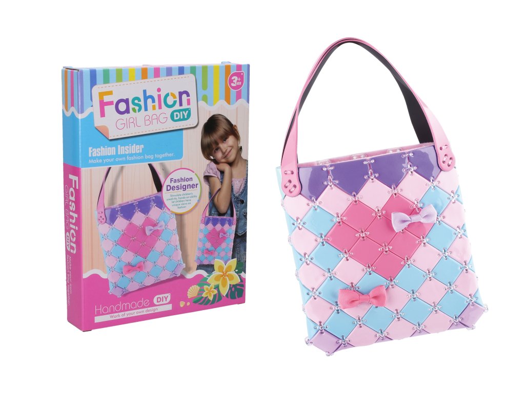 Tvorba tašky. Obrázkový návod na sestavení na zadní straně obalu.