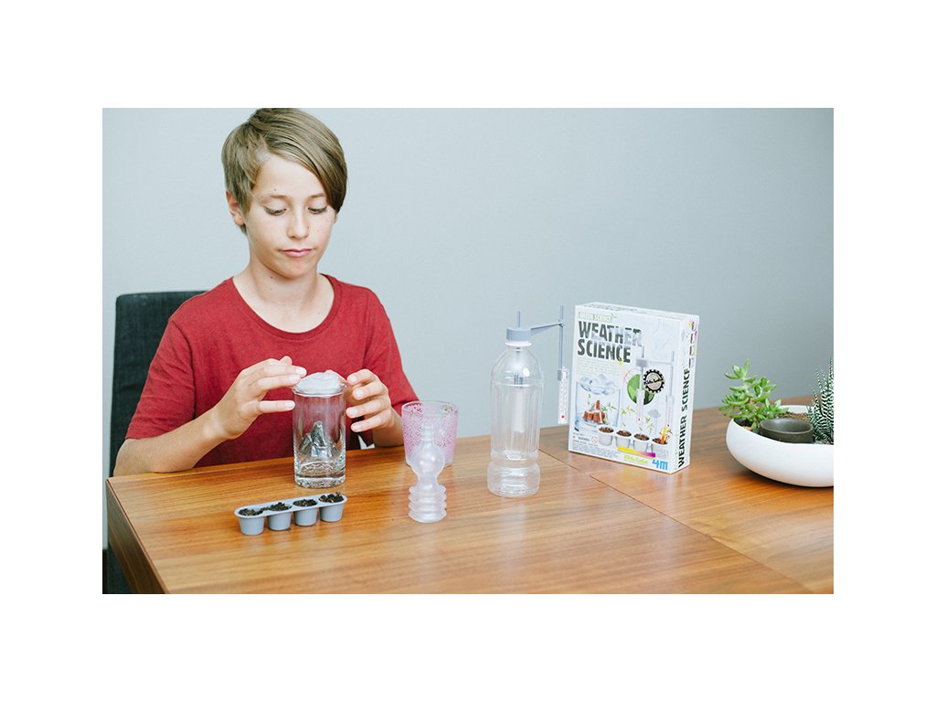 Experimentuj se statickou elektřinou, která vytváří blesky, vyrob mraky ve tvé dlani, sleduj vzdušné proudy, které produkují vítr a studuj skleníkový efekt a kyselý déšť! Tyto vzrušující aktivity ti pomohou pochopit, jak funguje počasí.