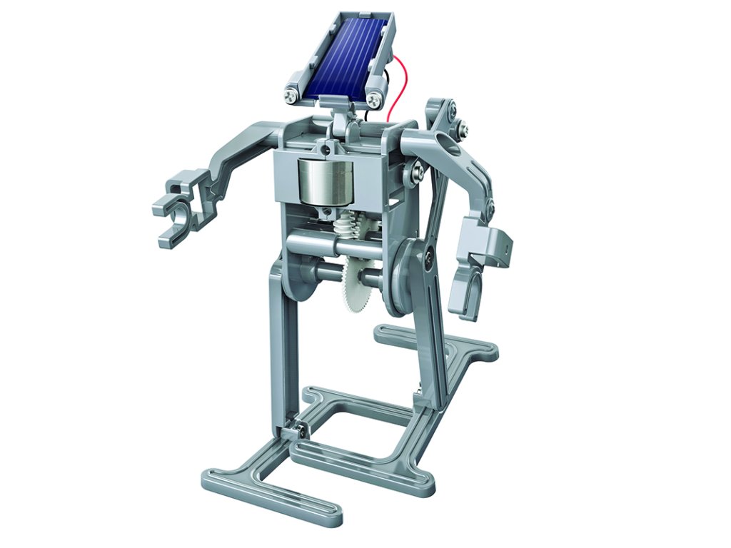 Nauče se, jak sestrojit pohyblivého robota pomocí solárních panelů a motoru. Sleduj ho, jak chodí. Nevyžaduje žádné baterie. Zrecykluj běžné materiály do částí jeho těla. Transformuj tohoto ekologicky poháněného robota do dinosaura nebo monster robota!