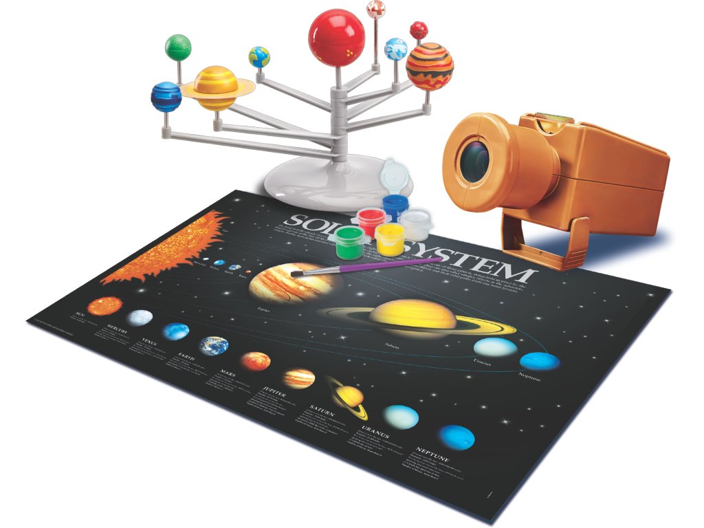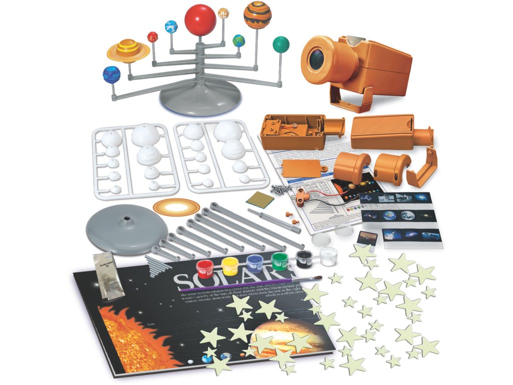 Postavte si a namalujte svůj vlastní model planetária Sluneční soustavy, postavte vesmírný projektor a užijte si velkolepou prezentaci s vesmírnou tematikou. Vyzdobte svůj pokoj obřím plakátem Sluneční soustavy a zářícími hvězdami. Tato vědecká sada je ideální pro začínající mladé astronomy.