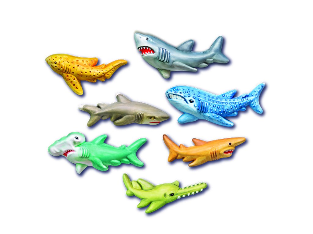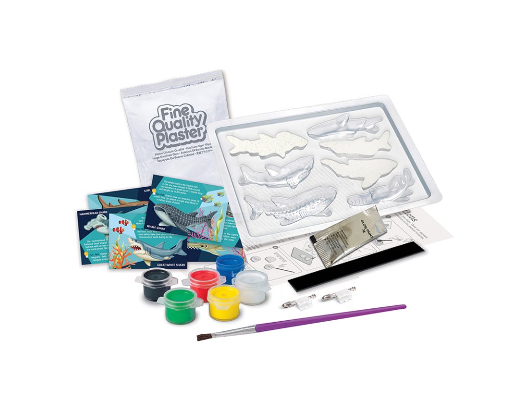 Odlij si ze sádry figurky žraloků a vybarvi je podle své představivosti. Sada rozvíjí dětskou představivost a kreativitu.