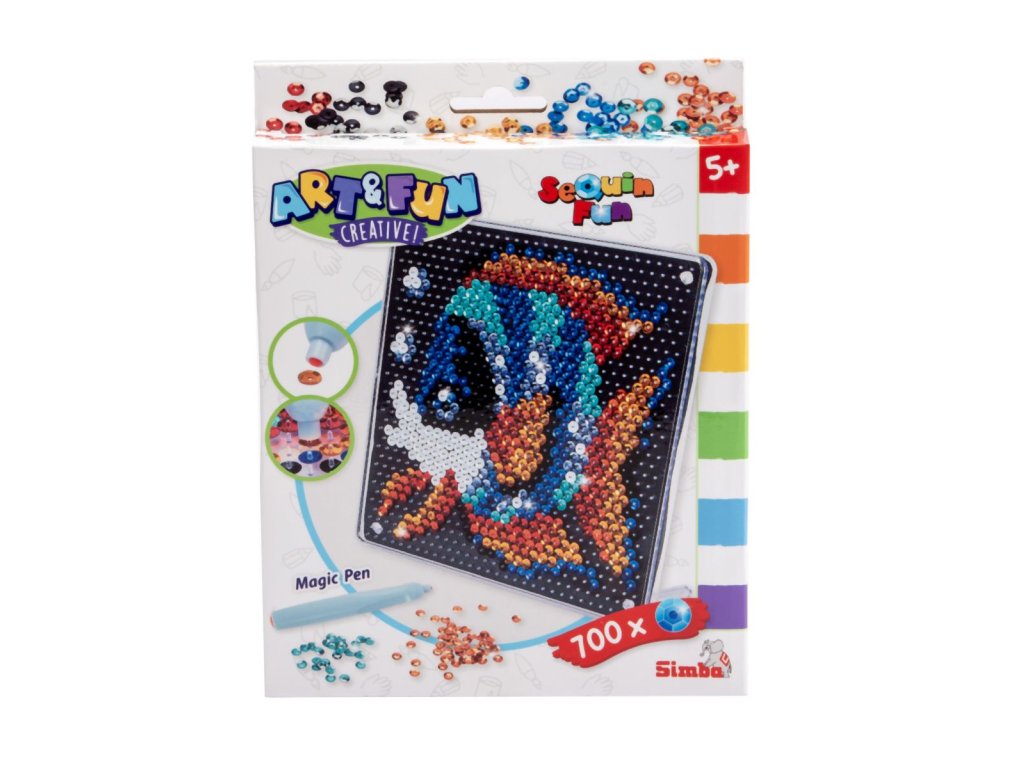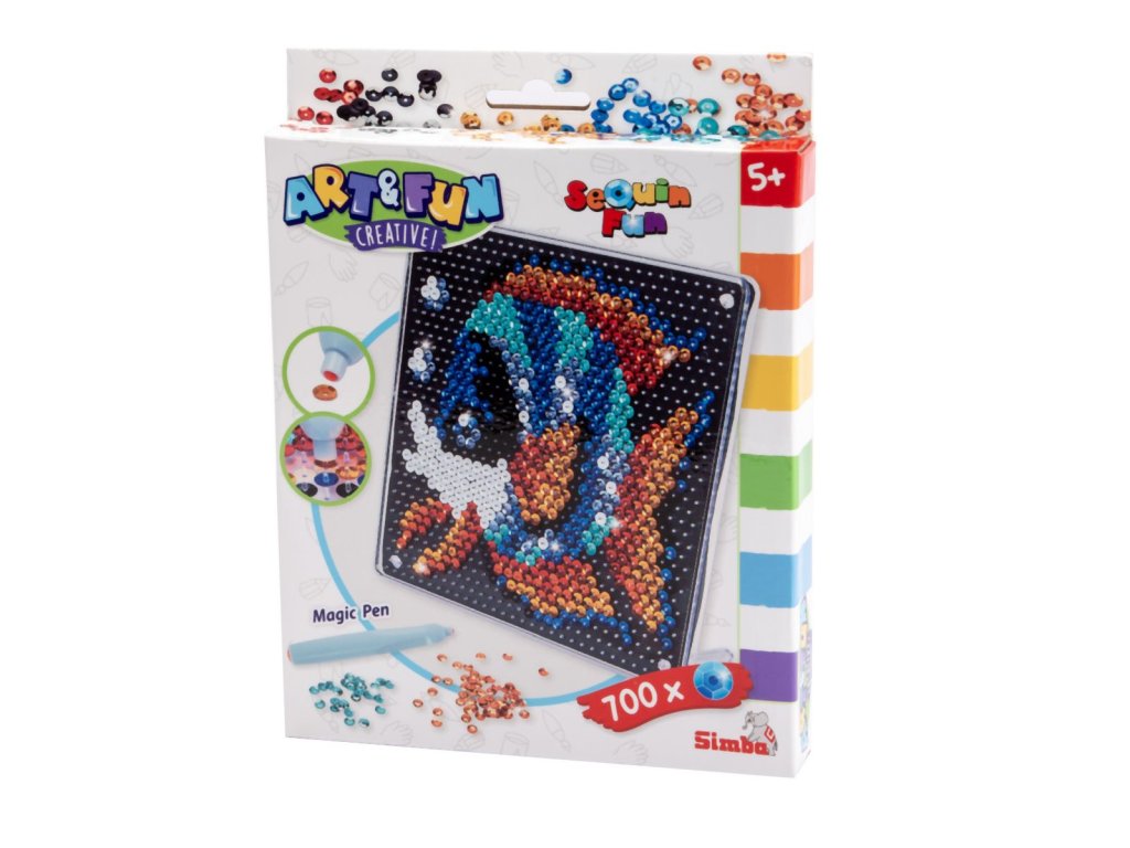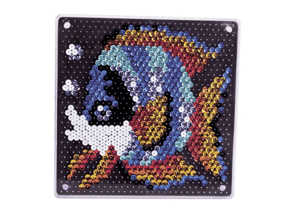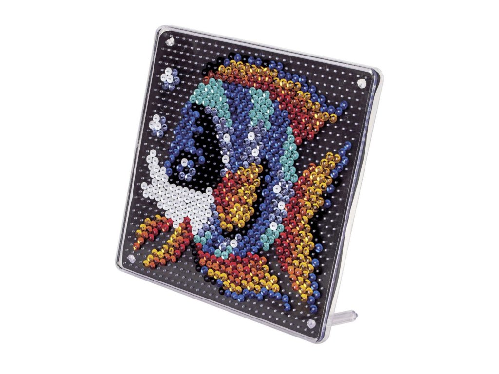 Sada k vytvoření obrázku rybky ze třpytivých flitrů na destičce o velikosti 18x18 cm. Součástí balení je 700 ks flitrů, magické pero a šablona kterou lze vložit na destičku. Destičku lze postavit na nožičky a vznikne tak krásná třpytivá dekorace.