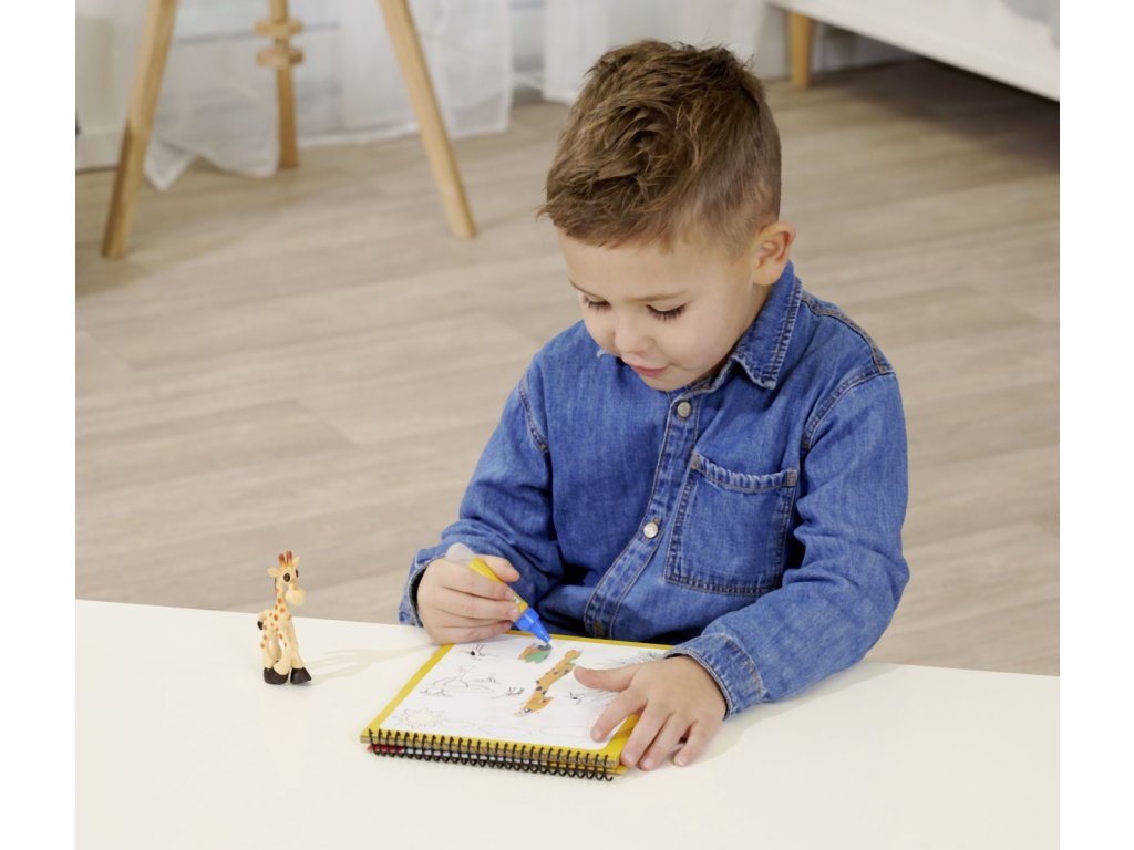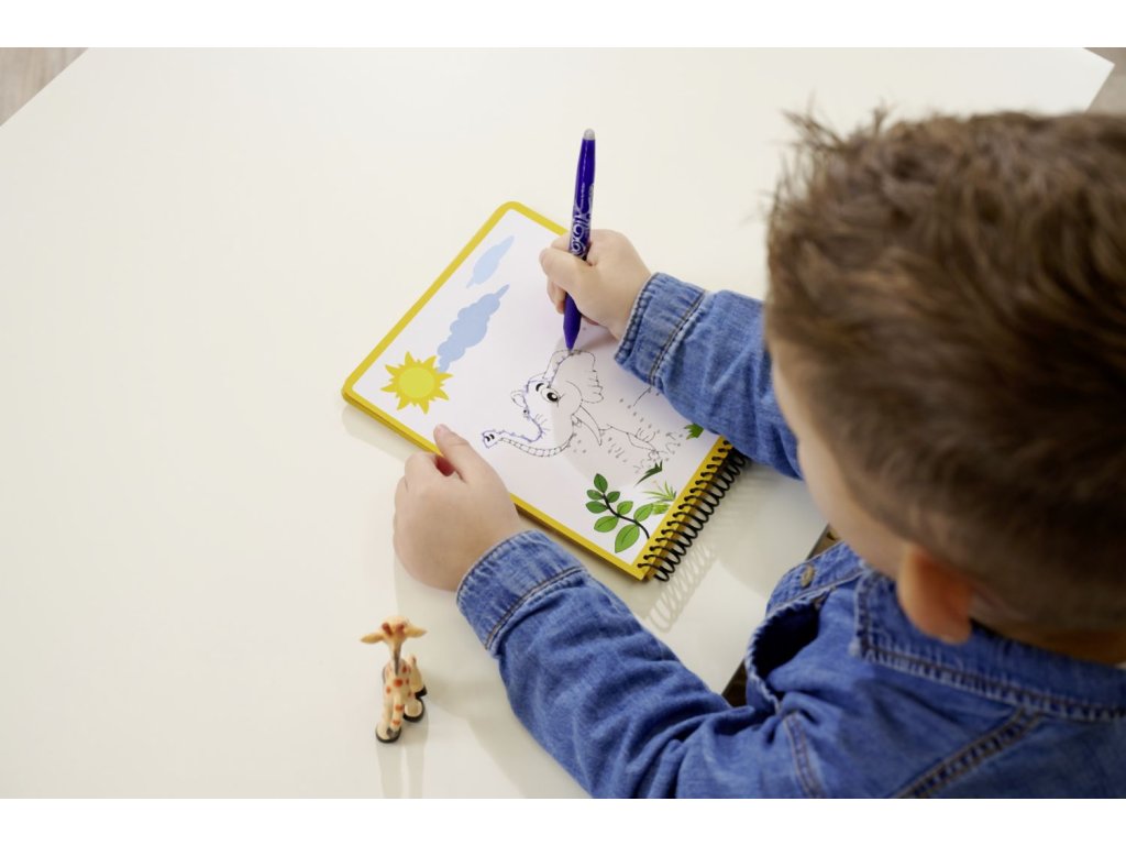 Blok magických omalovánek, které se vybarvují pomocí vodního pera. Stačí naplnit přiložené vodní pero vodou a vybarvit s ním magické obrázky. Po zaschnutí obrázků (cca 10 minut) vybarvení zmizí a omalovánka je opět připravena k vybarvení. Součástí je figurka žirafy 6 cm a štetec. Velikost bloku je 17 x 19 cm.