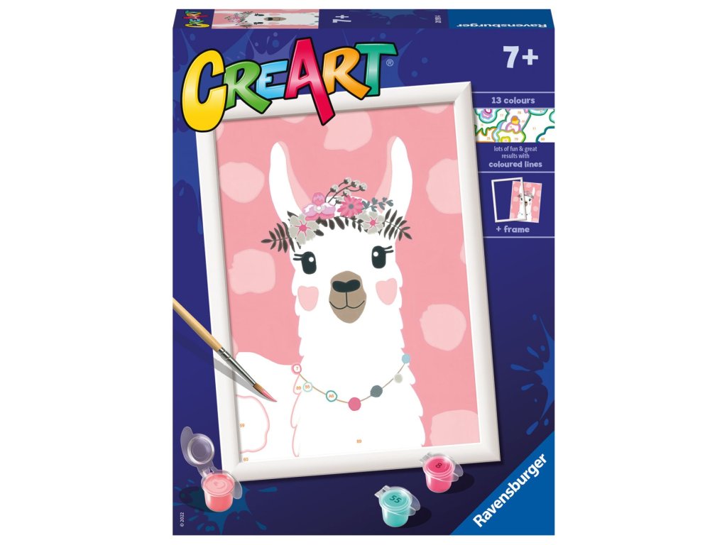 CreArt - to je kreativní zábava doslova pro každého. Staňte se na chvíli profesionálním malířem a namalujte si svůj vlastní obraz. Tato vtipná lama rozzáří každou zeď. Postupně vybarvujte jednotlivé plochy podle návodu (každé číslo na plátně odpovídá jedné konkrétní barvě) a dopřejte si radost z tvůrčí práce, u které se zabavíte na dlouhé hodiny. Malování je skvělá činnost, která nejen baví, ale také procvičuje zručnost, zlepšuje koncentraci a zaručuje spokojenost a pocit hrdosti všem umělcům. Set obsahuje vše, co potřebujete k malování: vysoce kvalitní, pevné plátno s obrazovou předlohou s očíslovanými plochami, sadu akrylových barev, štětec, kartonový stojánek pro kelímky s barvami a rámeček. Vykreslené plochy vytváří profesionálně vypadající umělecké dílo. Jakmile obraz dokončíte, nechte ho zaschnout a zarámujte ho do rámečku, který je součástí balení. Malování nikdy nebylo tak jednoduché.