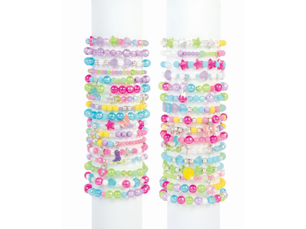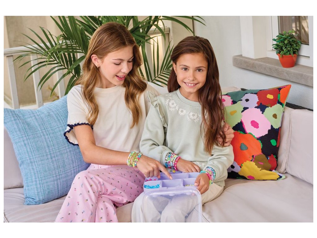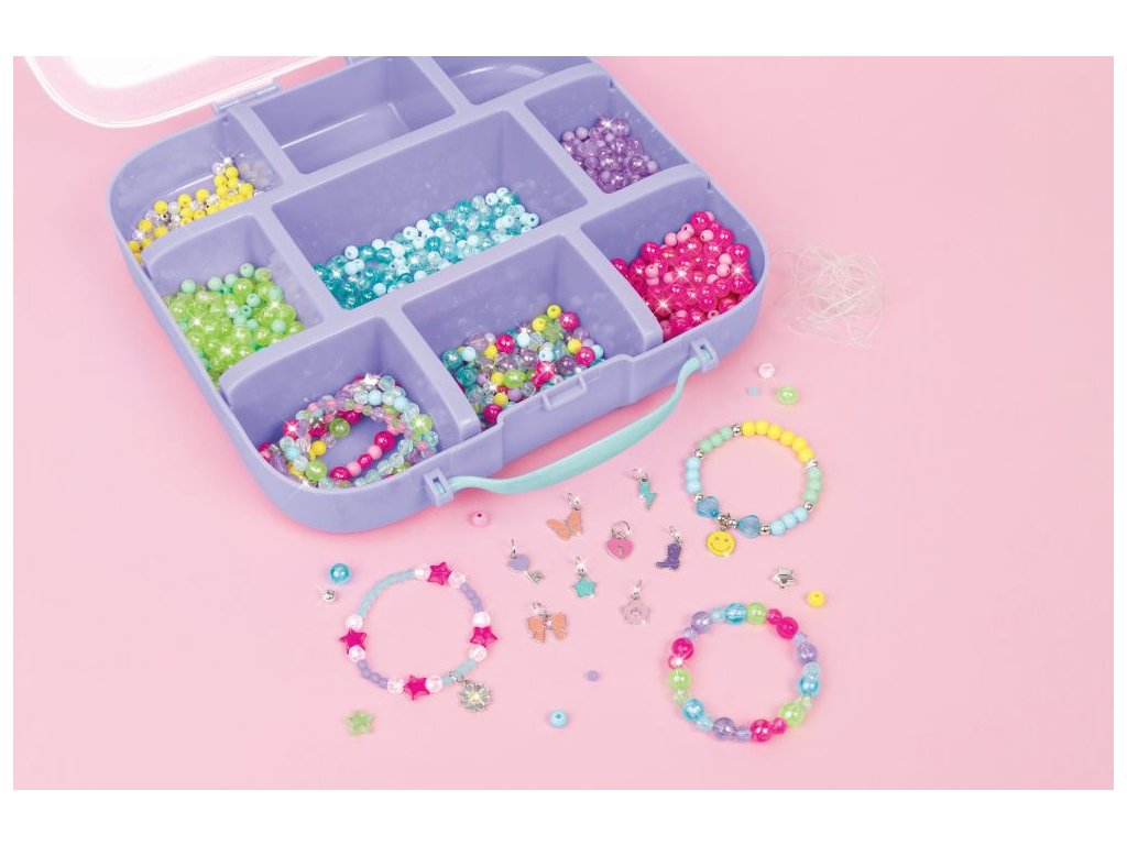Čeká vás velmi přenosný šperkařský zážitek! Vyrobte si více než 30 náramků přátelství s tímto barevným sortimentem 1440 korálků a kouzel. Uložte si materiály do praktického přenosného pouzdra, které si můžete vzít na cesty! Děti budou mít spoustu doplňků, které mohou vyměňovat se starými přáteli nebo novými přáteli, které při tvoření potkají, takže je to ideální aktivita na rande. Tato kompletní sada obsahuje vše, co mladí řemeslníci potřebují k tomu, aby byli na cestách kreativní, včetně šňůrky a jednoduchých pokynů pro výrobce náramků. Postupujte podle vzorových příkladů nebo volných kreací. Tato sada je skvělým tipem na dárek, ať už k svátku, narozeninám nebo jen tak! Ideální pro věk 8+.