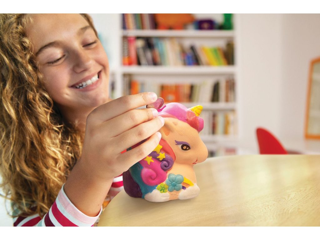 Použij svou fantazii a vytvoř si třpytivou kasičku ve tvaru jednorožce.