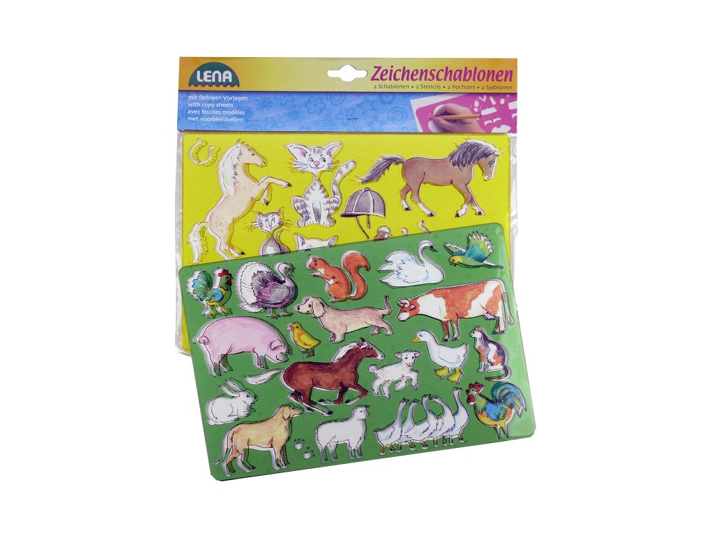 Kreslící šablonys motivem koní a koček. Balení obsahuje 2x šablonu o velikosti 27x23cm.