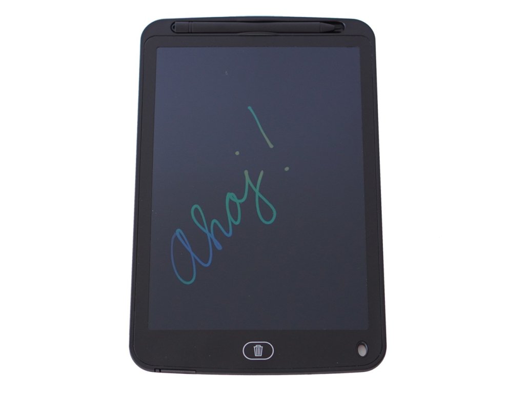Kreslící tabulka - tablet. Přiloženou tužkou nakresli obrázek na tabulku a zmáčknutím jednoho tlačítka ho smaž. Tabulka je ve tvaru úzkého tabletu. Je moderní a designová. Má barevný podklad - nakreslené obrázky jsou na ní barevné. Velikost 10,5 palce.