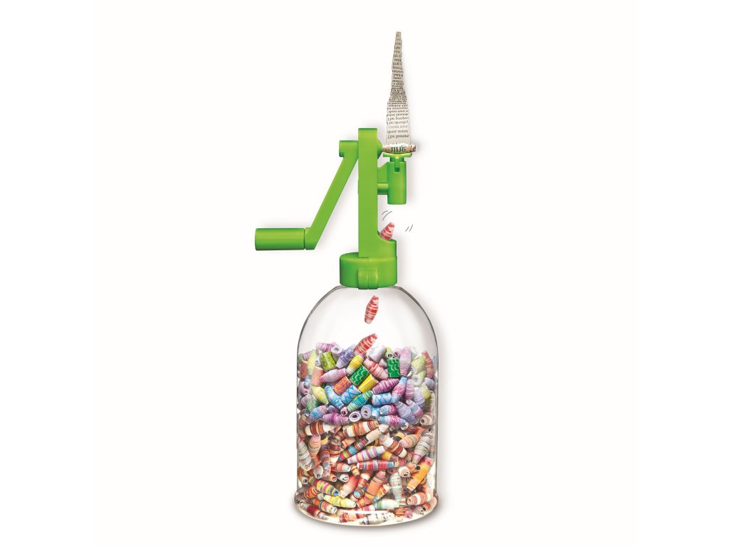 Bav se a vyráběj papírové korálky s naším speciálně navrženým nástrojem. Jednoduše vlož do nástroje papír z novin nebo časopisu a otoč kličkou.