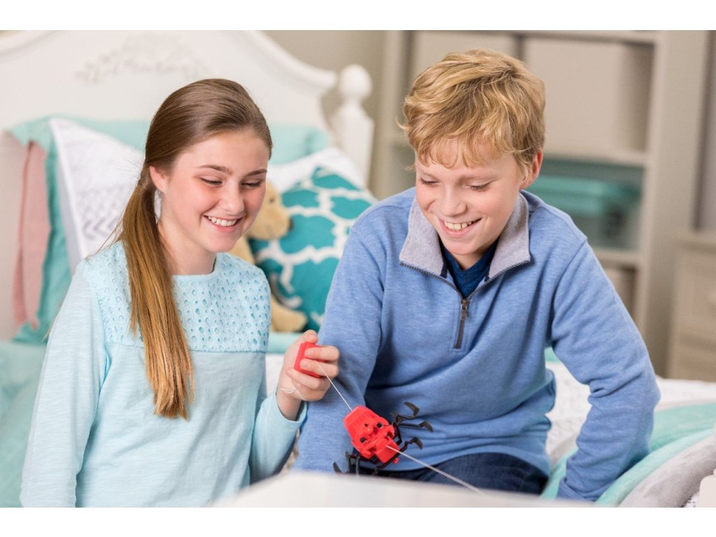 Pavoučí robot se potácí nahoru a dolů po provázku, jako skutečný pavouk na hedvábné niti. Děsivé!