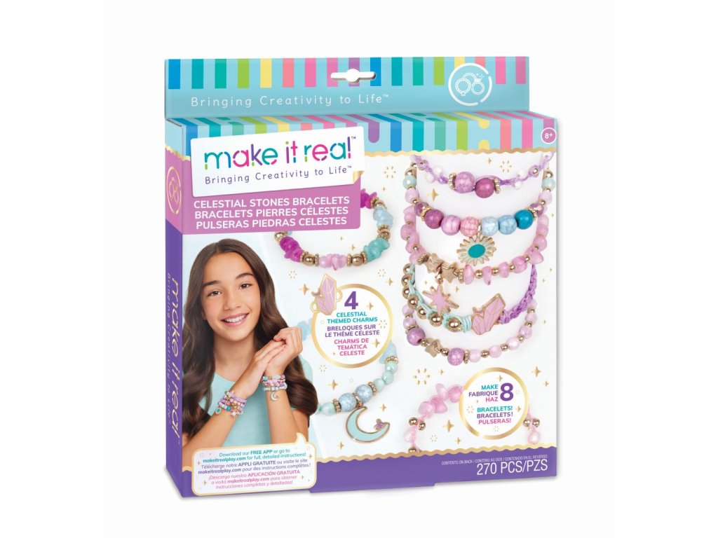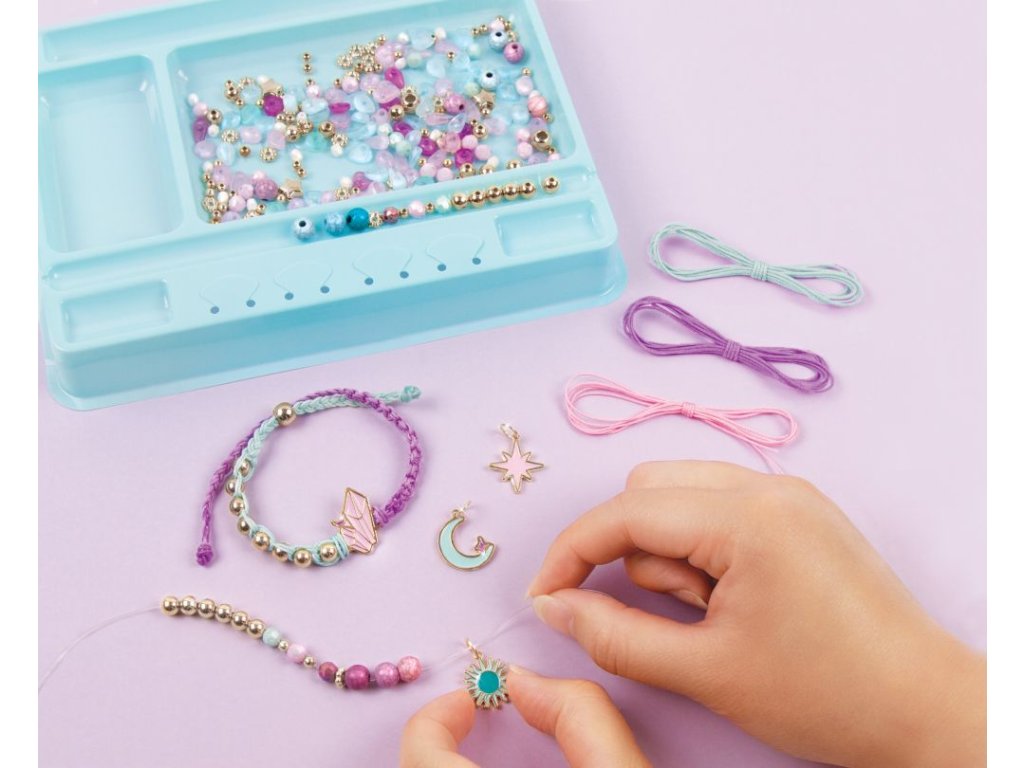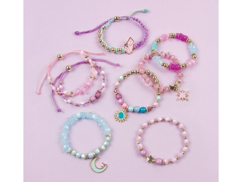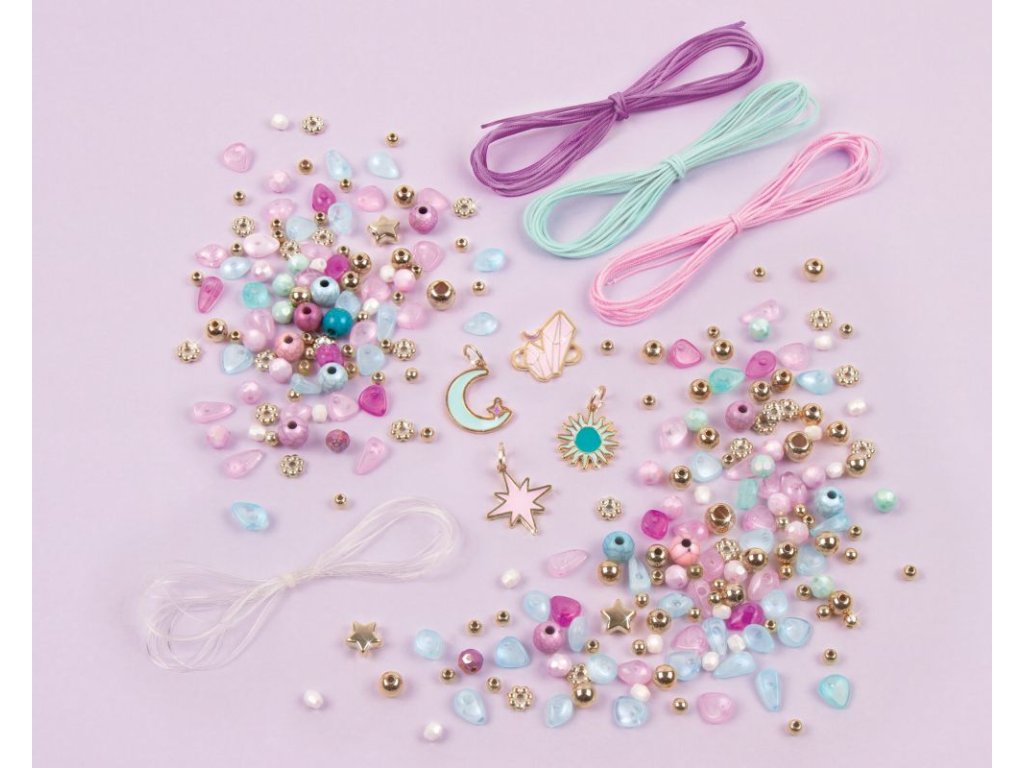 Sada obsahuje komponenty na výrobu osmi náramků. Oživte svůj svět kreativity a vyrobte si náramky dle vlastní představy. Sada obsahuje: 3 barevné šňůrky a čirou elastickou šňůrku, korálky, perličky, hvězdičky (260 ks) a 4 přívěšky. Baleno v krabici. Vhodné pro děti od 8 let.