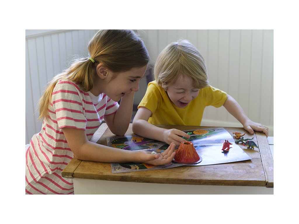 Namaluj si 6 dinosaurů a sopku a můžeš hrát dobrodružnou hru a provádět erupci sopky.
