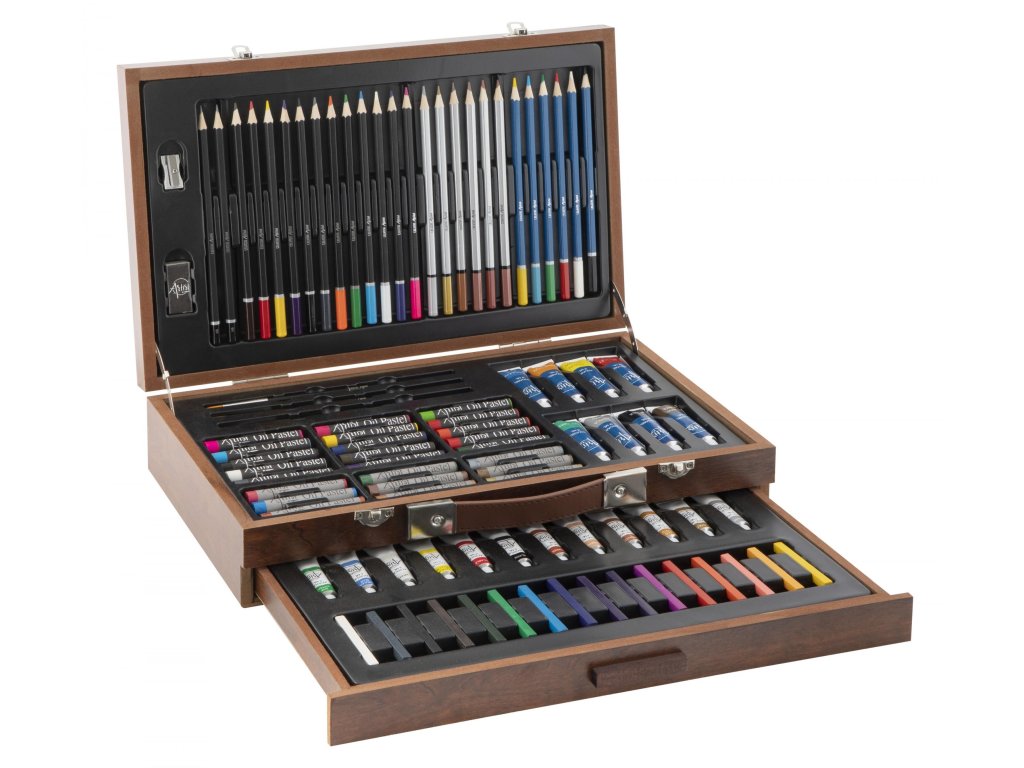 Tento kufřík není jen sbírkou uměleckých potřeb, je to inspirace zabalená do krásného dřevěného balení. Otevírá dveře do světa barev, tvarů a nekonečných možností tvoření. Je to investice do radosti z umění a do rozvoje vlastní kreativity.