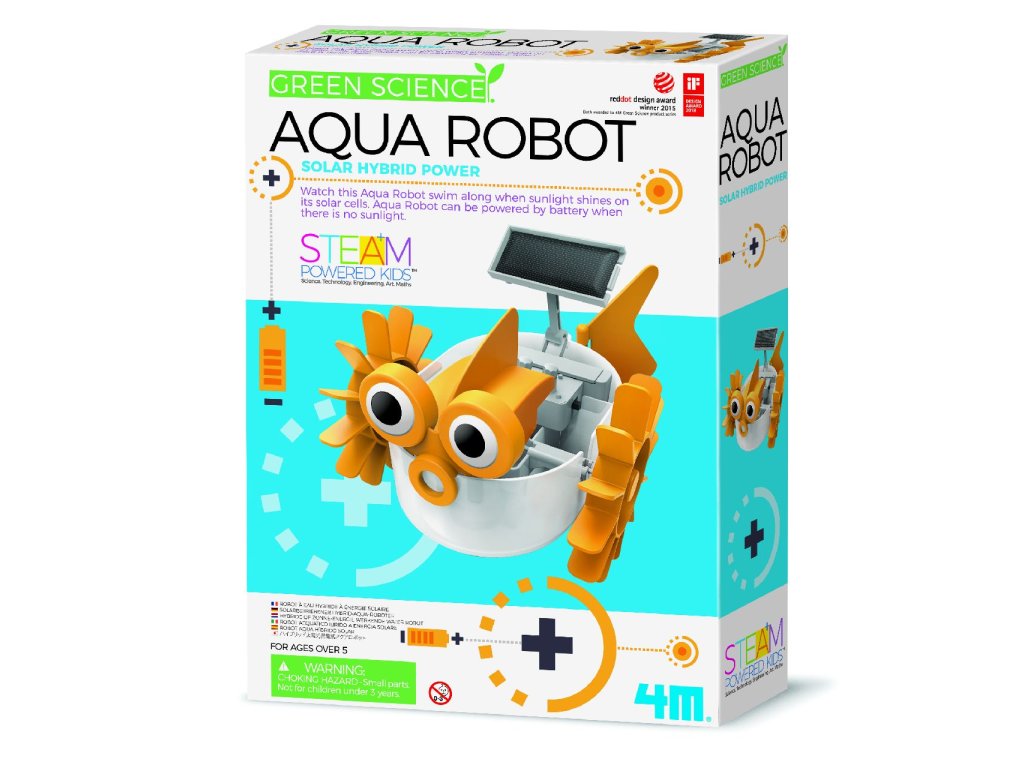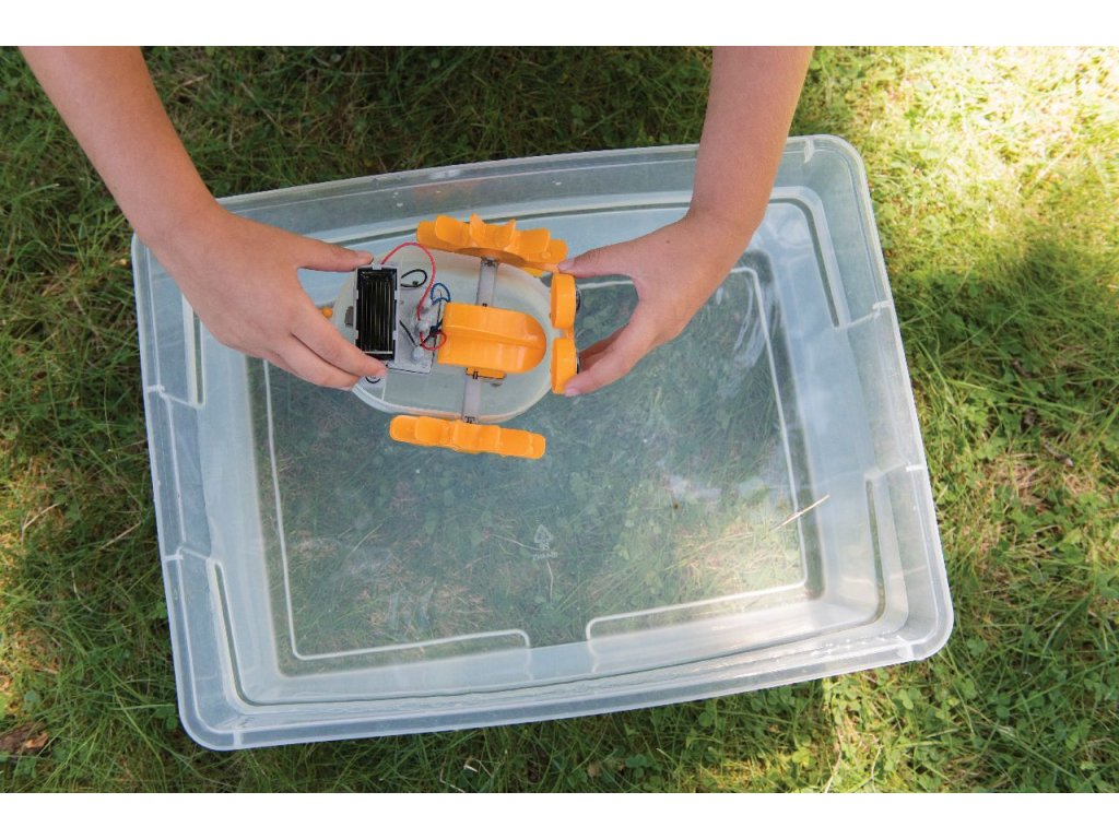 Sleduj, jak tento robot plave, když jeho solární články přijímají sluneční světlo. Možnost napájet taky z baterie.