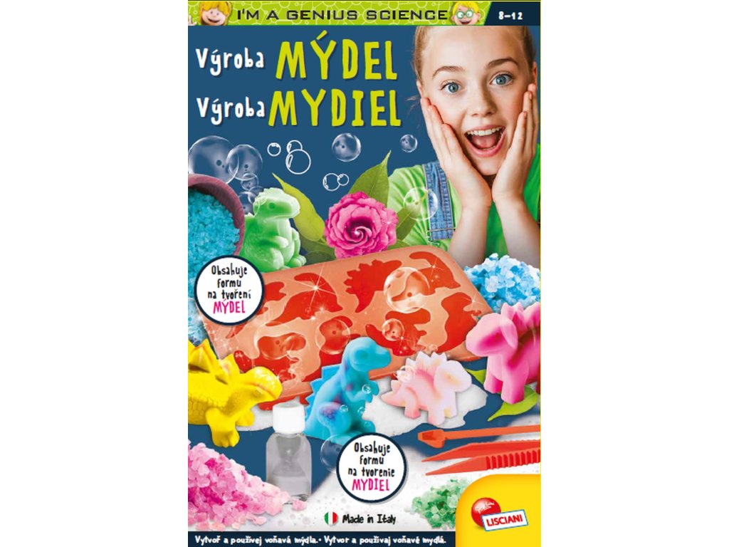 Kreatvní sada na výrobu mýdel. Sada obsahuje : formičky na mýdlo, barevnou esenci, vůni, glycerinové vločky, dřevěnou špachtli a odměrku.