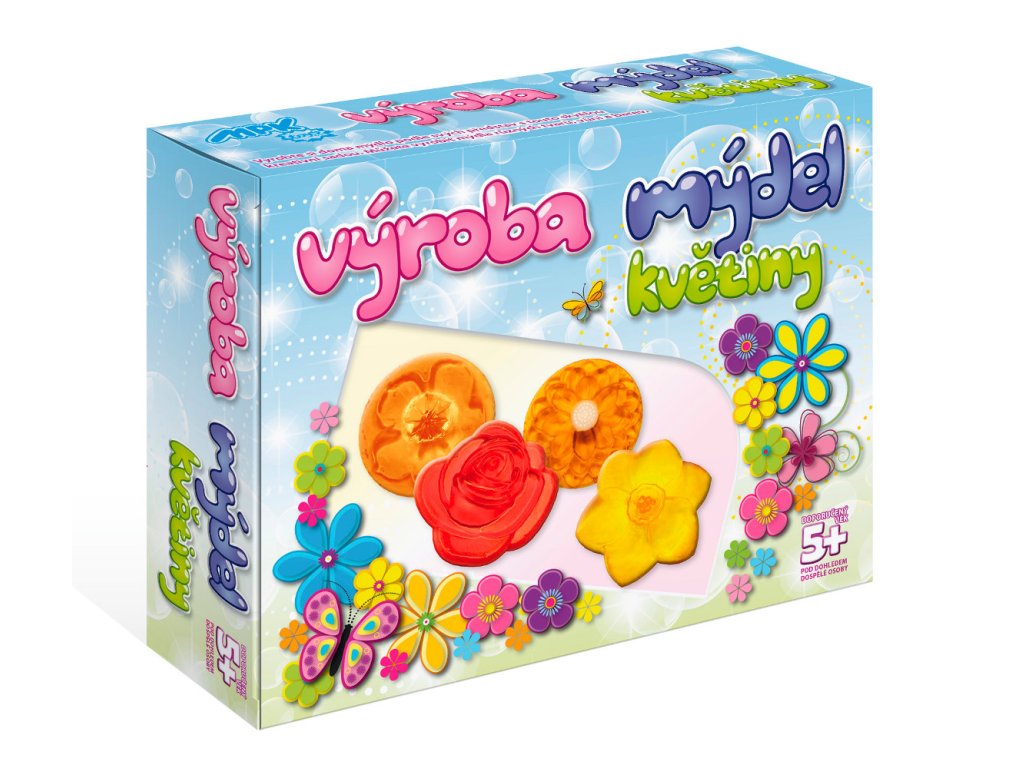 Kreativní sada pro výrobu mýdla. Balení obsahuje: blok čistého mýdlového základu, blok žlutého mýdlového základu, blok modrého mýdlového základu, blok červeného mýdlového základu, formičku, tyčinku na promíchávání a kádinku pro rozpuštění a rozmíchání. Možno použít v mikrovlnné troubě. Z jedné sady lze vyrobit 8 - 10 mýdel. Vhodné od 5 let.