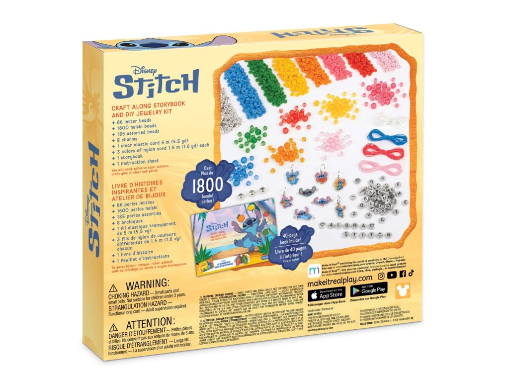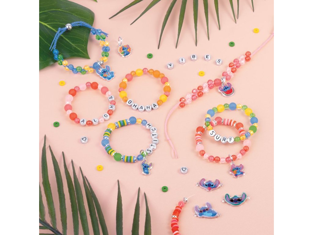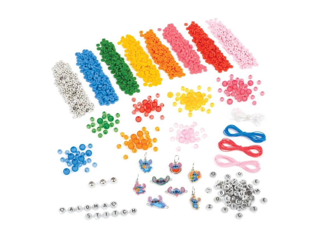 Každý výtvor ozdobí Stitchovy přívěsky s dobrodružnou tematikou. Vyrobte si 12 náramků. Tato sada je skvělým dárkem pro děti, které milují Disney, ať už k narozeninám, svátku nebo jen tak! Podporujte sebevyjádření a kreativitu a zároveň rozvíjejte jejich jemnou motoriku, vizuální a hmatové a smyslové dovednosti! Ideální pro věk 6+. Obsahuje: 66 korálků s písmeny, 1600 korálků heishi 185 různých korálků 8 přívěsků 1 průhlednou elastickou šňůru 5 m (5,5 yardu) 3 barvy nylonové šňůry 1,5 m (1,6 yardu) každá.