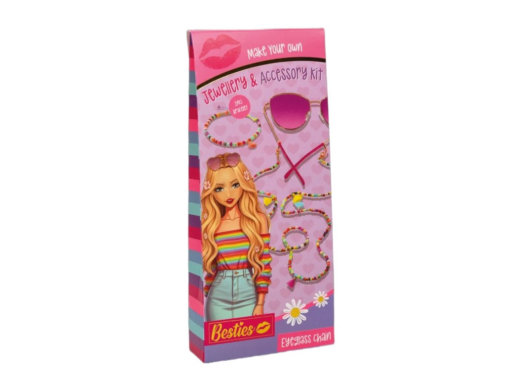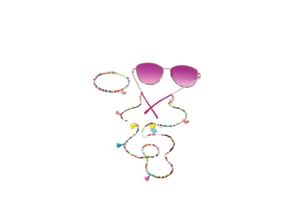 Kreativní set pomocí kterého si vyrobíš úžasný náramek a také nádhernou šňůrku na brýle. Ať už na sluneční nebo dioptrické, v každém případě budeš mít jistotu, že je neztratíš. A navíc budou vypadat naprosto parádně, 18x8 cm, sada obsahuje vše potřebné k výrobě - korálky, přívěsky, provázky