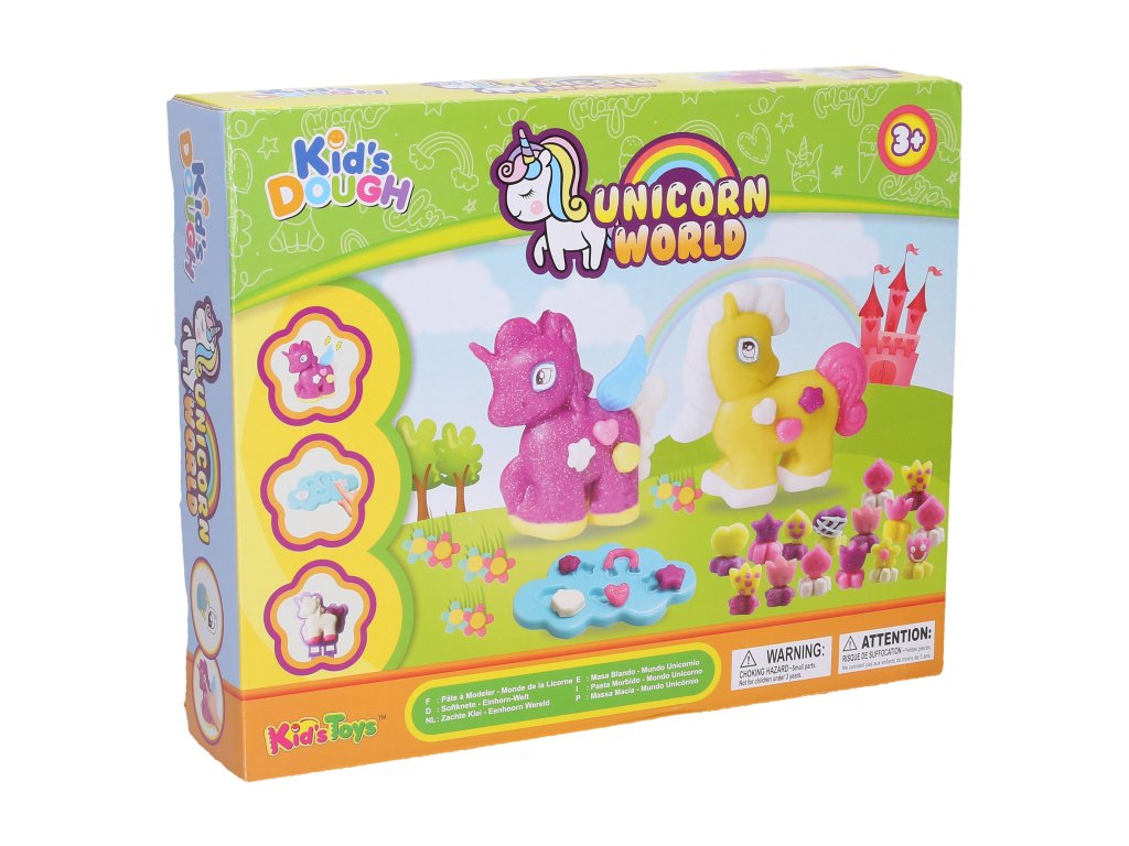 Modelína výtvarný set jednorožci. Balení obsahuje 4 barvy modelíny, váleček, nůžky, křídla, oči a ozdoby na jednorožce, formy na jednorožce.