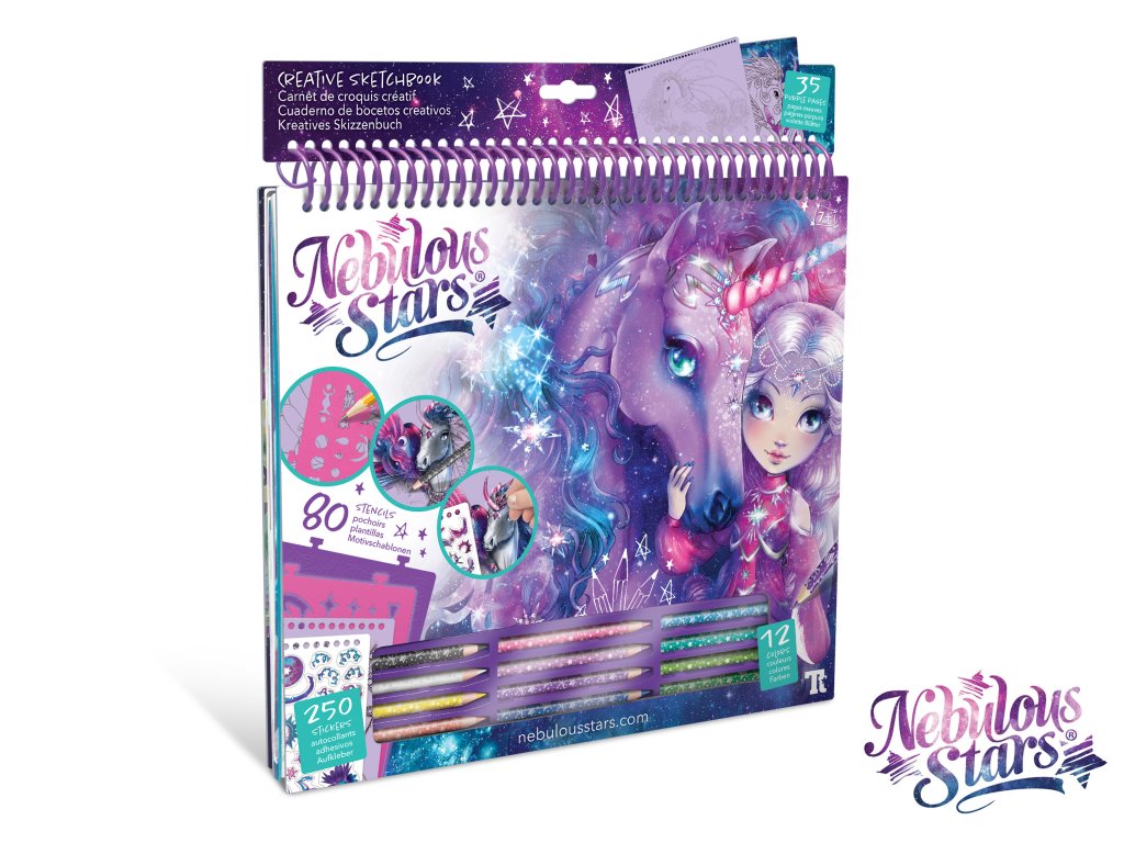 Vytvářejte magické a úžasné kresby fantasy koní, kteří budou jako stvořeni ke skotačení mezi hvězdami. Využijte množství různých nálepek, šablon a technik, které vám pomohou vytvořit koně vašich snů.