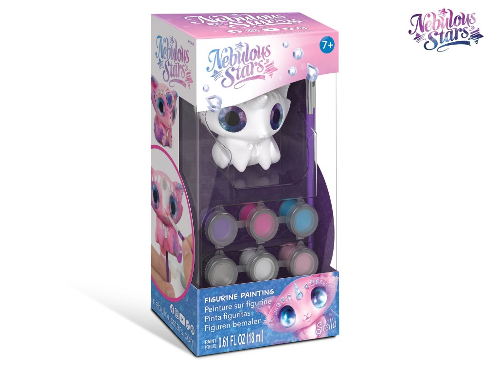 Nebulous Stars Barvení figurky. Velikost figurky 8 cm. Obsah - figurka, 5 barev, třpytivý lak, kamínky, 2 štětce, hůlka, návod. 6 variant.