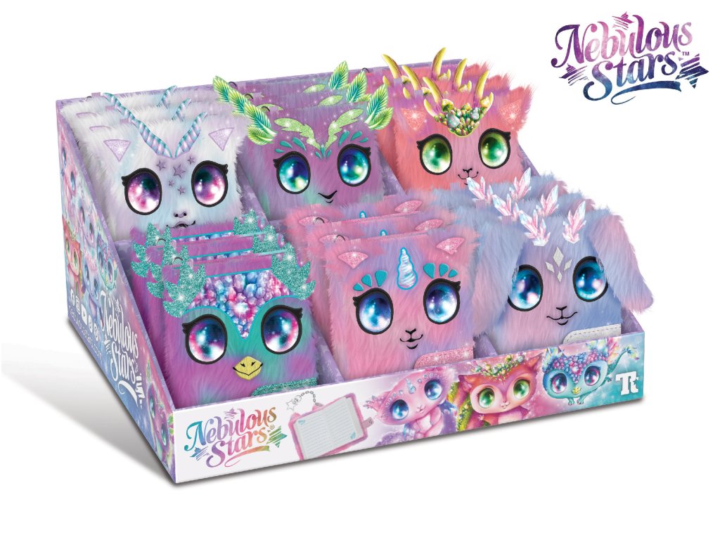 Nebulous Stars Huňatý deníček mini. Rozměry 8x11 cm. 24 ks display box. 6 variant - Stella, Agatha, Lilya, Astria, Elana, Aura.
