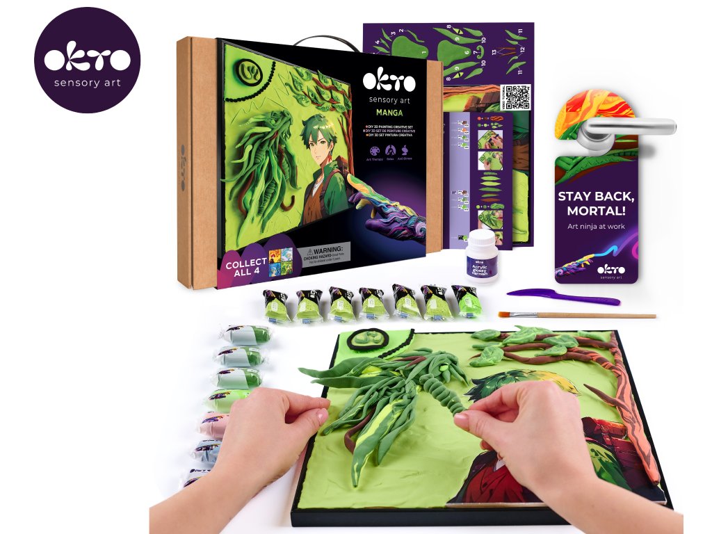 OKTO Manga motiv živlů "Země" výtvarný set. Velikost rámu 30x40 cm. Vytvarujte obrázek podle návodu. Obsah balení - rám, obrázkový návod, modelovací nástroj, sada samoschnoucí modelovací hmoty, akrylový lak 20 ml, štětec.