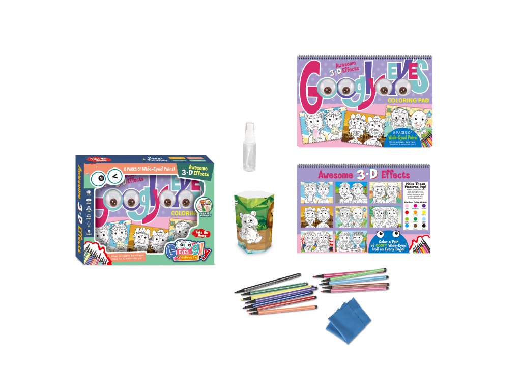 Omalovánky s 3D očima, stíratelné. Rozměry 28x21,5x1 cm. 8 obrázků.