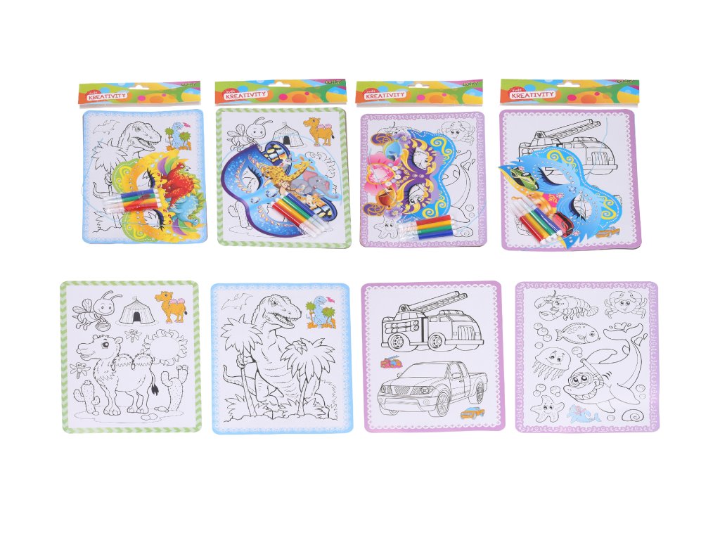 Balení obsahuje: 4x omalovánku, 4ks fix a masku na šňůrku.