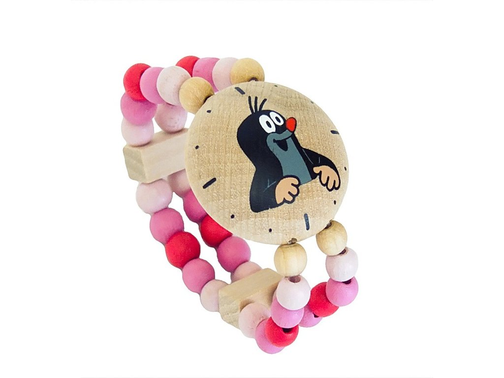 Dívčí dřevěné hodinky s obrázkem krtečka. Navlečeno na jemné gumičce. Nevhodné pro děti do 3 let. Obsahuje malé části. Výrobek je zdravotně nezávadný.